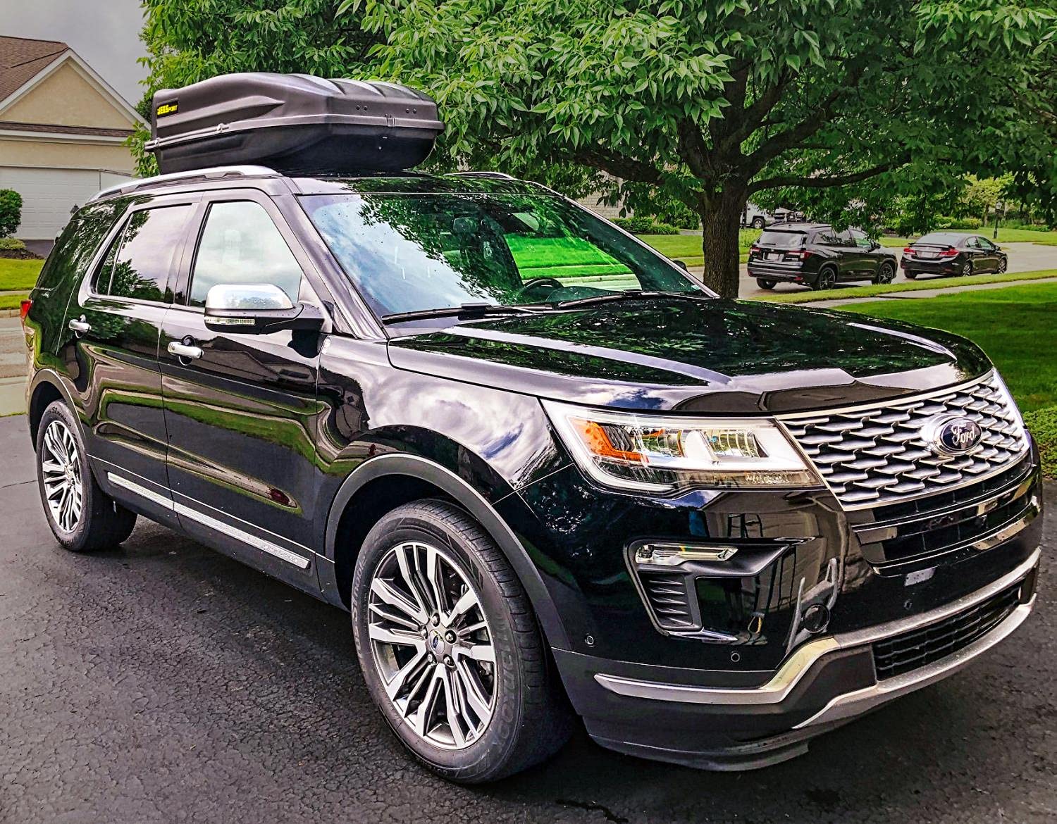 - Weatherproof storage for your luggage with a four corner locking system. front latch. and weather-tight seal for ultimate car rooftop protection and security