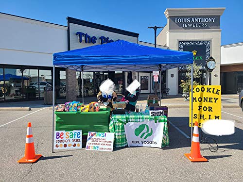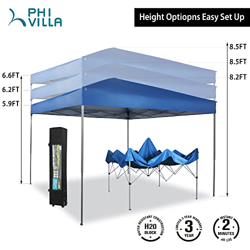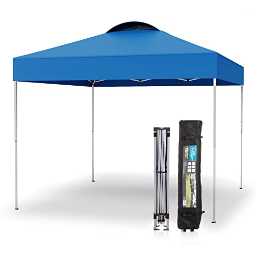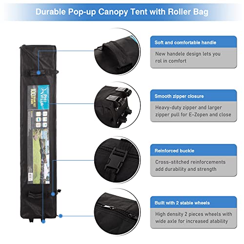 - Easy One Person Setup: Assembled size is 10'x10'. just hit the button on the leg to adjust.Easy to set up with collapsible steel frame and easy to remove with wheeled carrying bag (weighing only 26 pounds). This canopy designed so two people can set it up in seconds with no tools necessary.