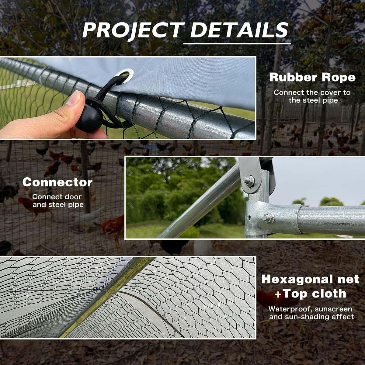 - ��Anti- Rust and Durable Steel Structure��The chicken coop uses a high-quality steel pipe frame. coupled with galvanizing technology. don't worry about rusting in outdoor. The steel pipe is strong and stable enough in windy and heavy rain.