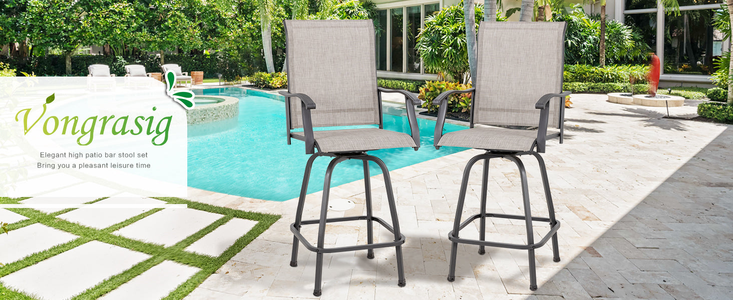 Let's enjoy some extra comfort with this Vongrasig swivel high bar stools set. The ideal choice for outdoor amusement. such as garden. porch. or yard.