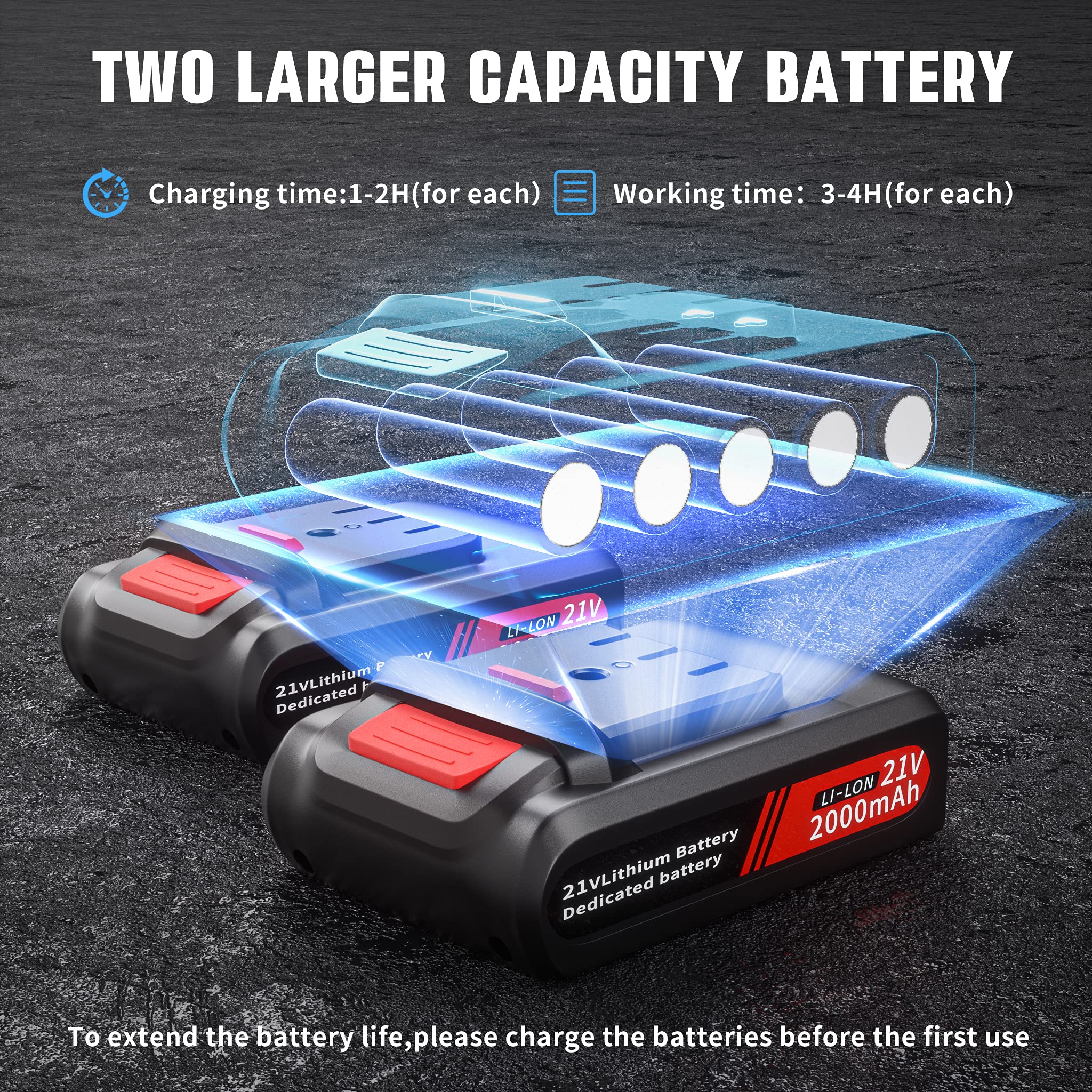 - ��Long Life Rechargeable Lithium Batteries��- The electric shears has 2 pack 21V. 2Ah rechargeable lithium batteries. long battery life. 1.5 hours fast charging. continuously working cut about 6000 times after being fully charged.The two batteries can be used in turn.( Notice: The batteries are not fully charged. please charge the batteries before the first use.)
