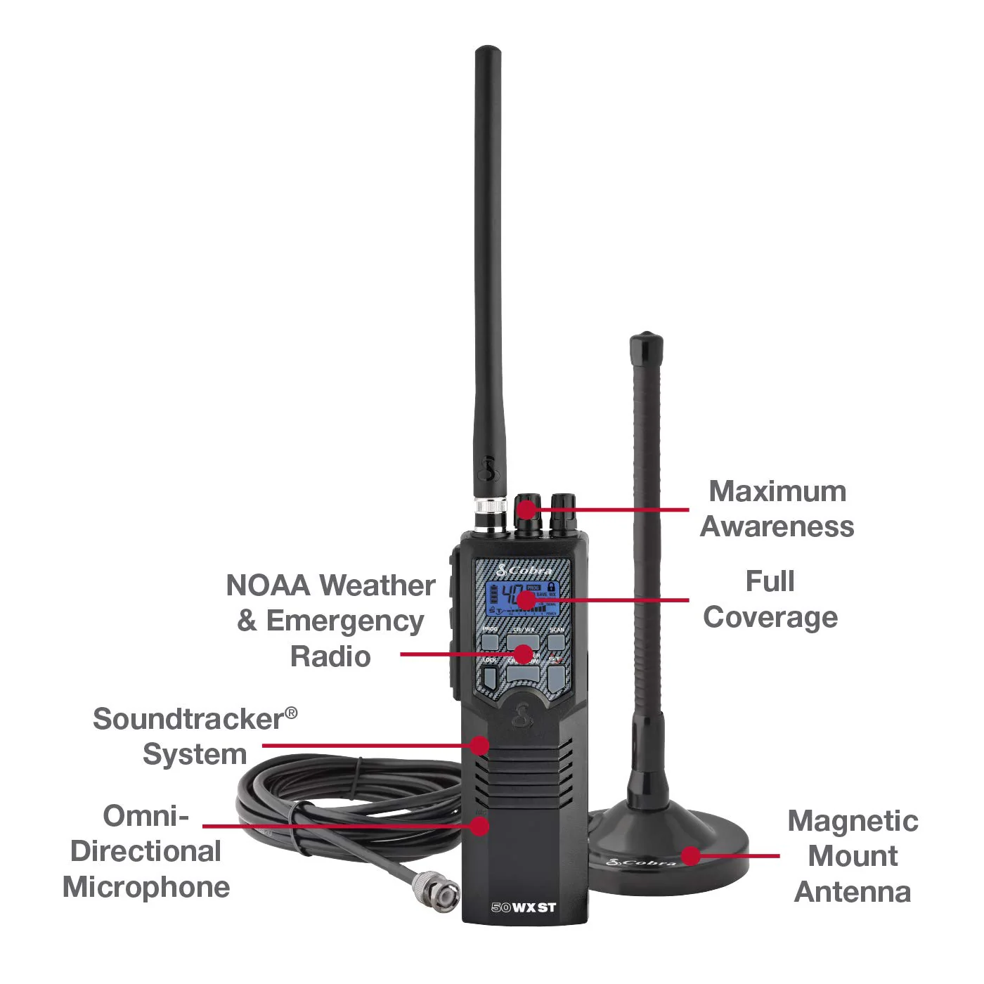 - Magnetic Mount Antenna - The HH RT 50 Road Trip includes a magnetic antenna so you can operate your handheld CB radio from within your vehicle. Mount the magnetic antenna to the center of your roof on your car for clearest connection.
