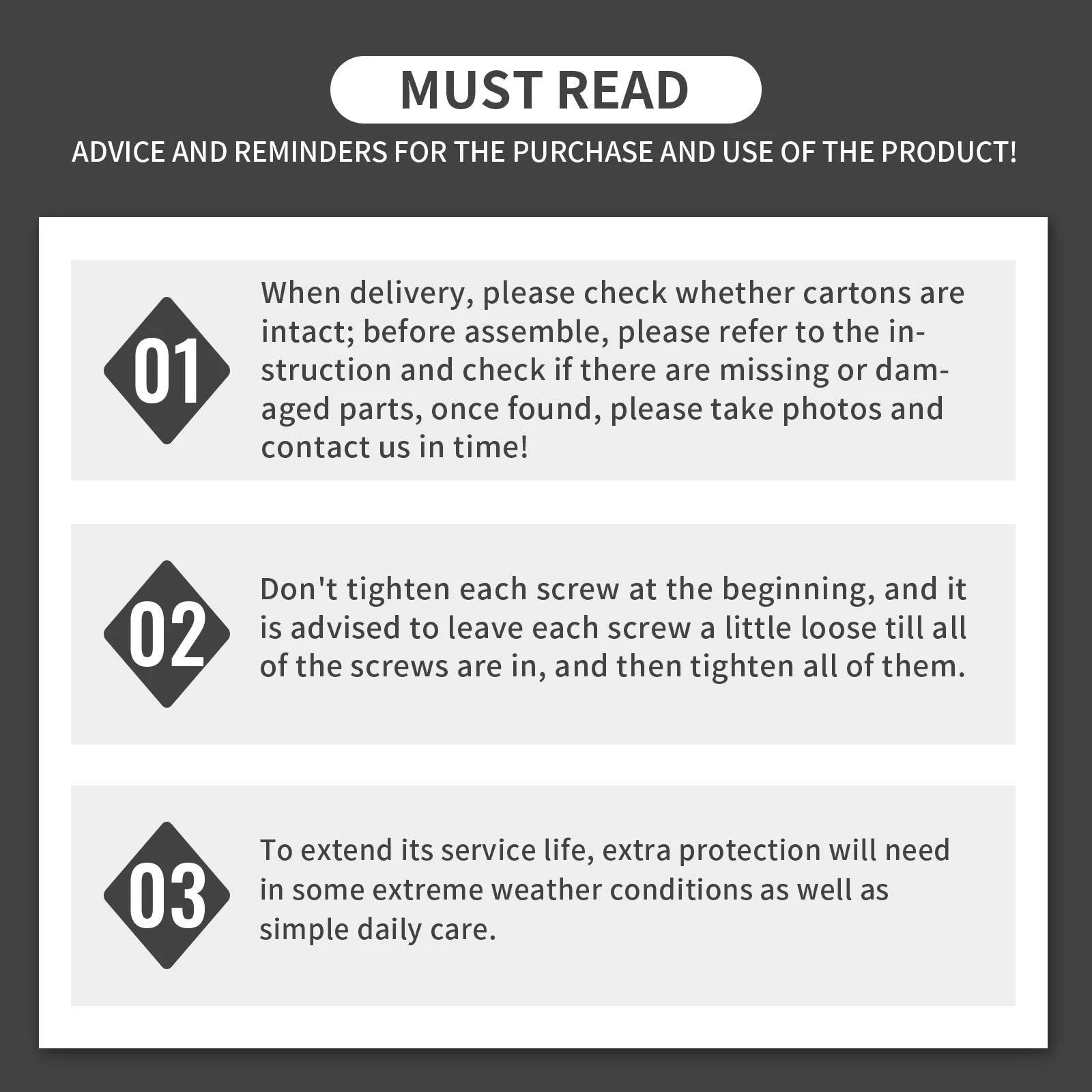- After-Sales: If there are any issues of assembly. damaged or missing parts. or other problems of product quality. please feel free to contact us. and our after-sales team will respond to you within 24 hours with the powerful solutions. including replacement. or return & refund.