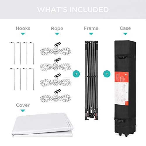 • PREMIUM ROLLING STORAGE CASE: Compact your canopy with a few clicks of the button and slide it into the zip-up carrying case! Features a set of wheels and a rugged handle to move from party to party