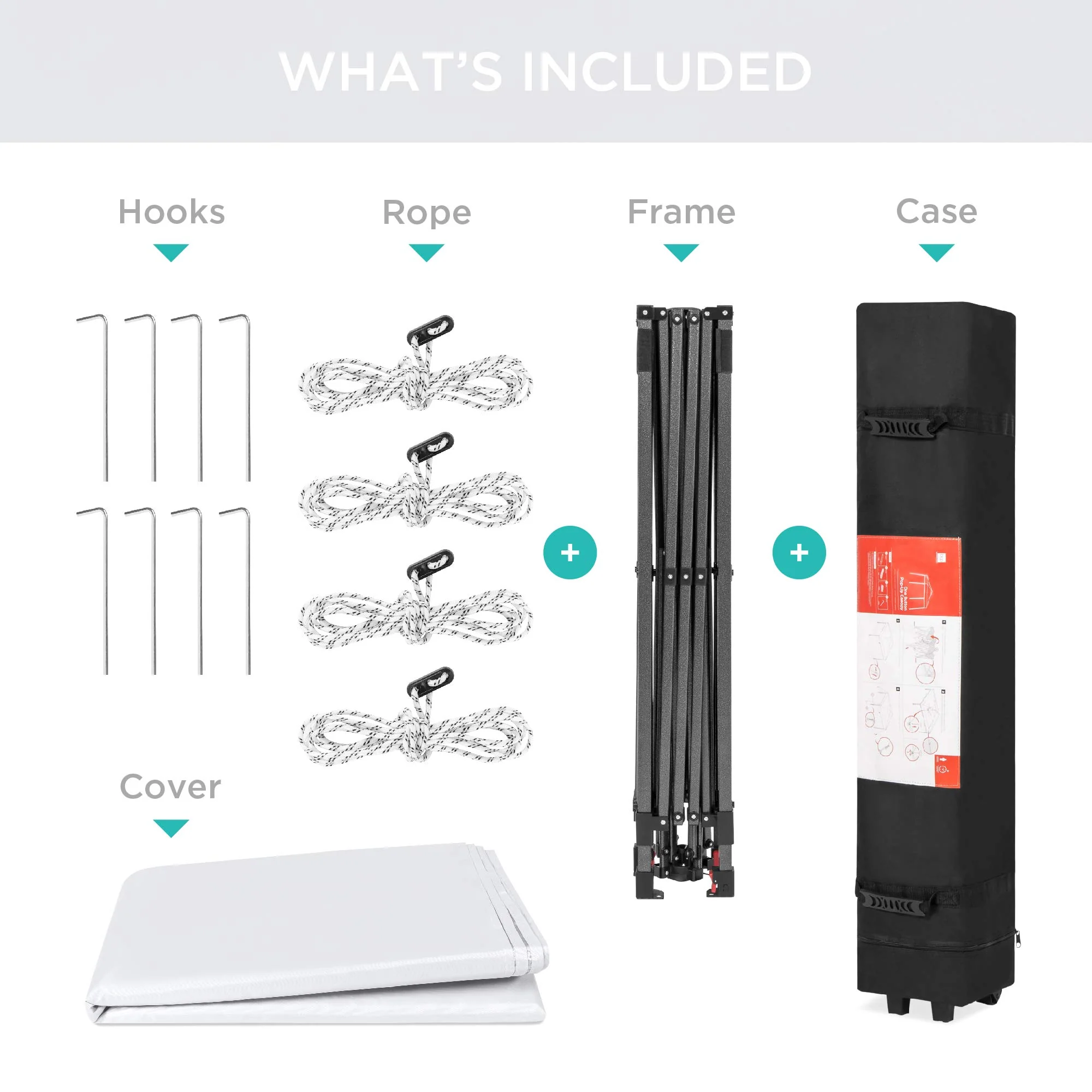 - PREMIUM ROLLING STORAGE CASE: Compact your canopy with a few clicks of the button and slide it into the zip-up carrying case! Features a set of wheels and a rugged handle to move from party to party