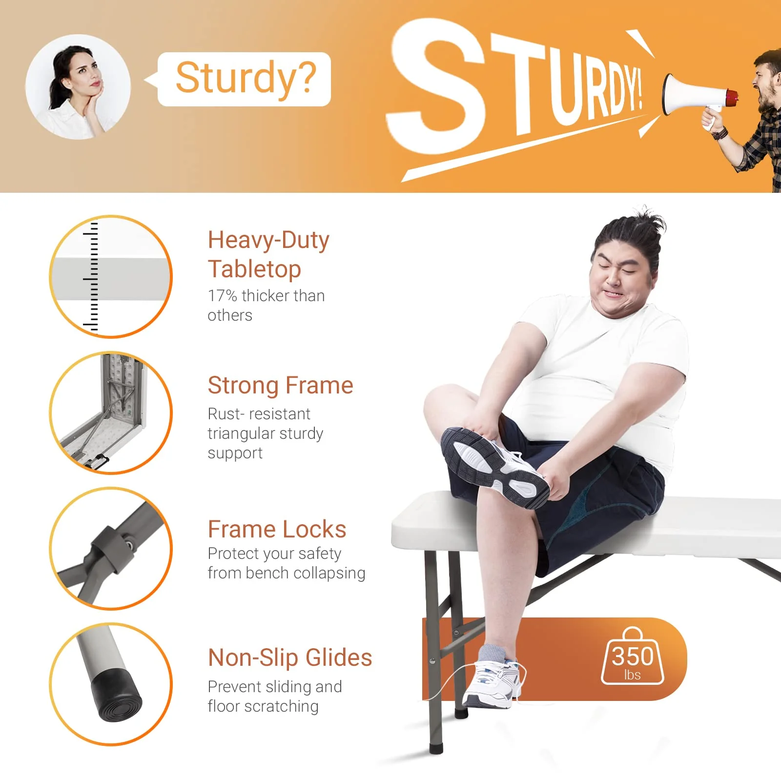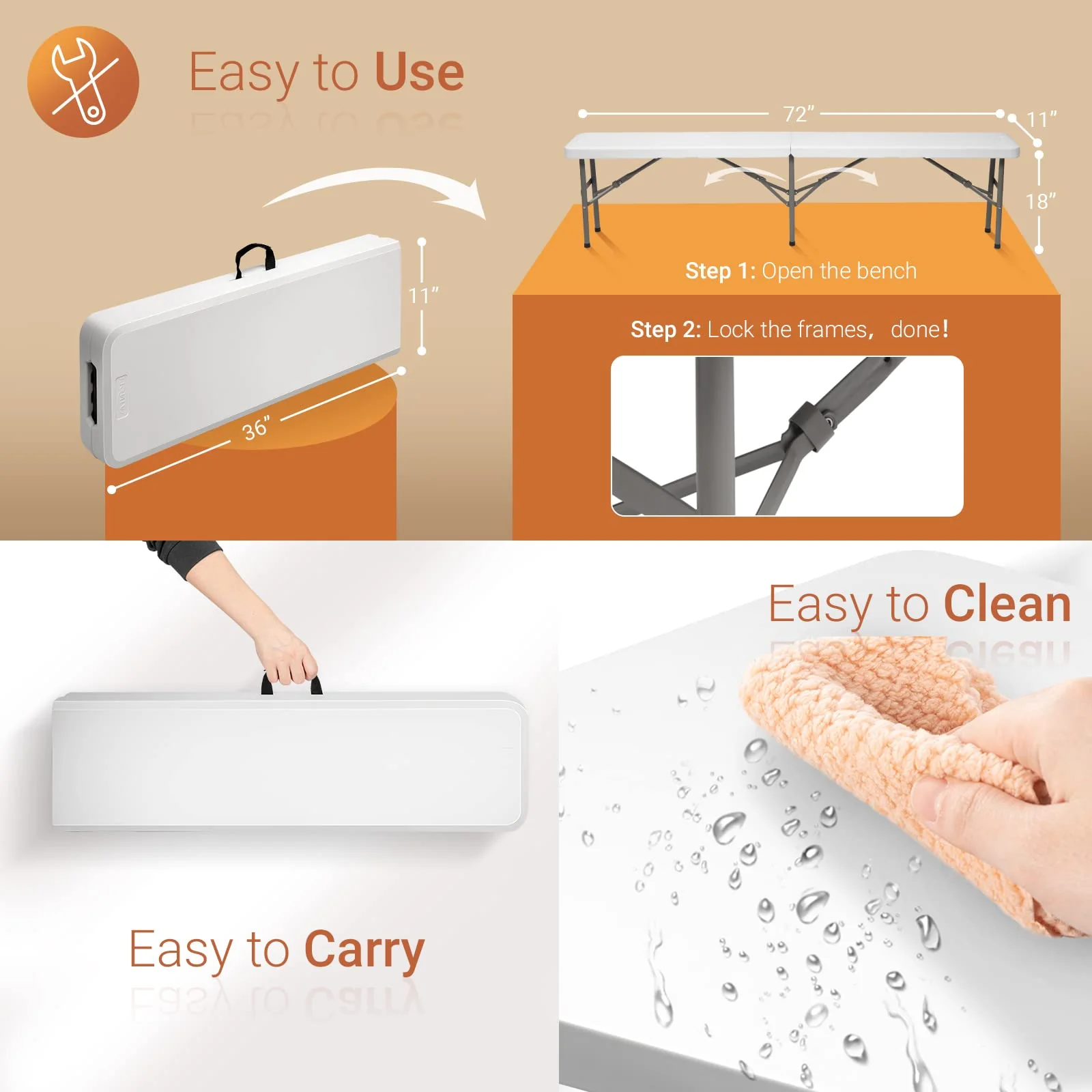 - Easy to Take and Store: The overall size of this rectangular bench is 72 x 12.01 x 17.13 inches (L*W*H). It can be easily folded into a compact case measuring 36*12*4 inches. making it incredibly convenient to store and carry. With its efficient storage design. it maximizes space utilization. allowing you to make the most of your available space
