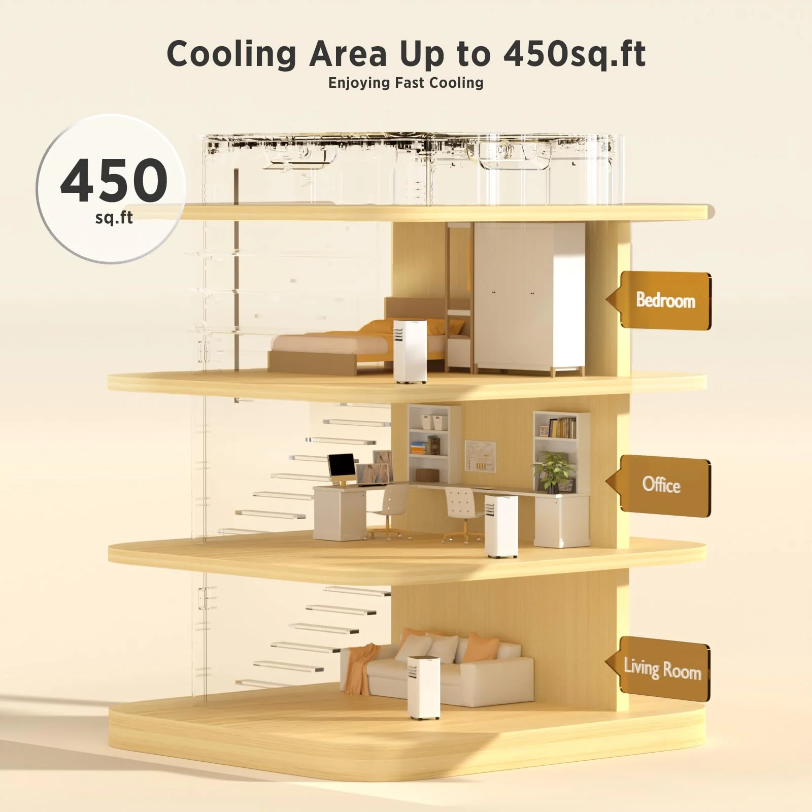 - ��Easy to Operate & 24Hrs Timer��- Adjust speeds. modes and timer with buttons at the top. giving you the flexibility to take instant control. In addition. the remote lets you choose fan speed or cool preferences from up to 16 feet away when you're lying on the couch or bed. Our ac has a simple remote control and a panel that even elderly people who are not familiar with smart appliances can operate.