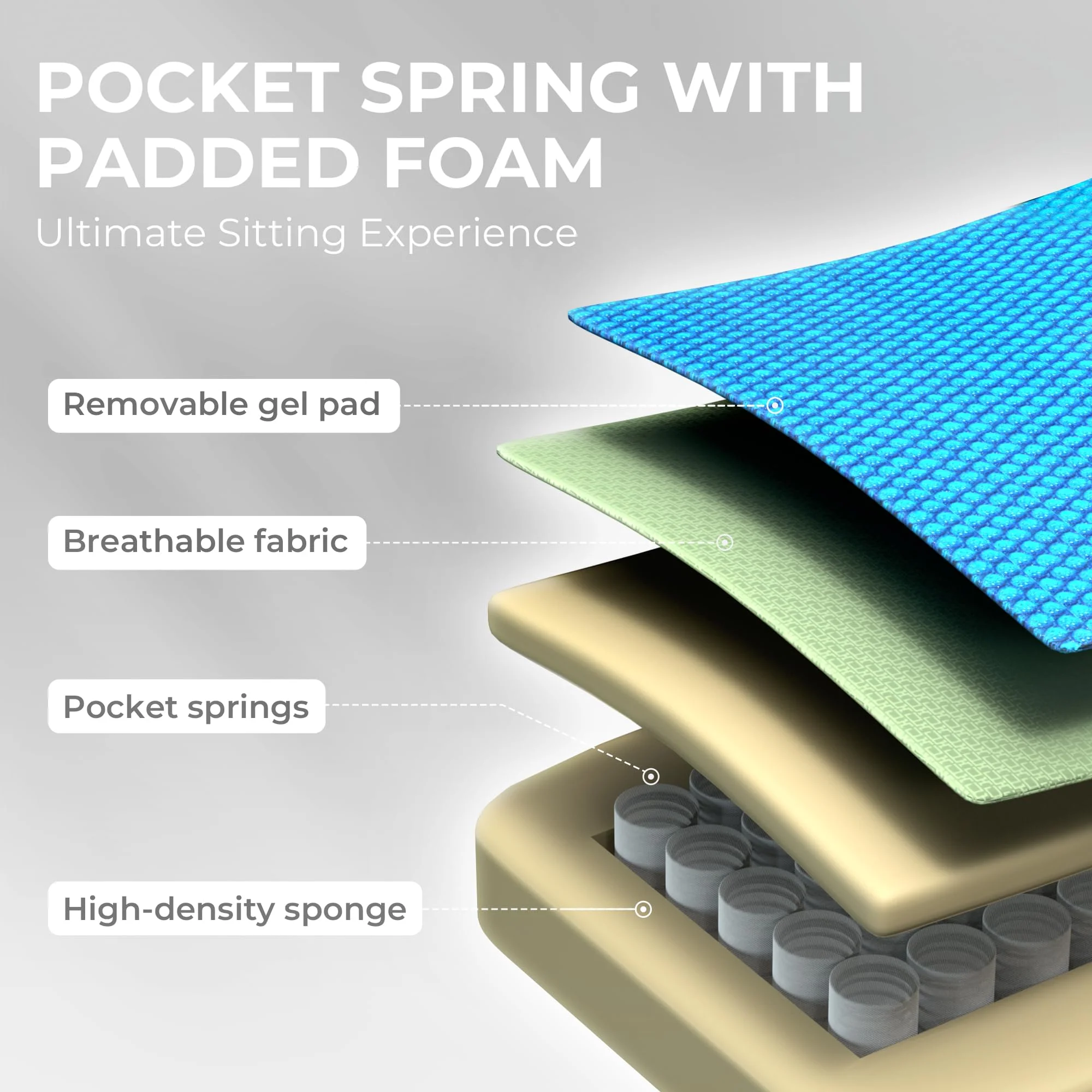 - [Individual Pocket Springs] The seat cushion is composed of pocket springs. a type of spring commonly used in sofas. Each spring operates independently. offering elasticity and support by adapting to pressure and contouring to your body's weight. providing a luxurious and comfortable experience akin to that of a sofa.