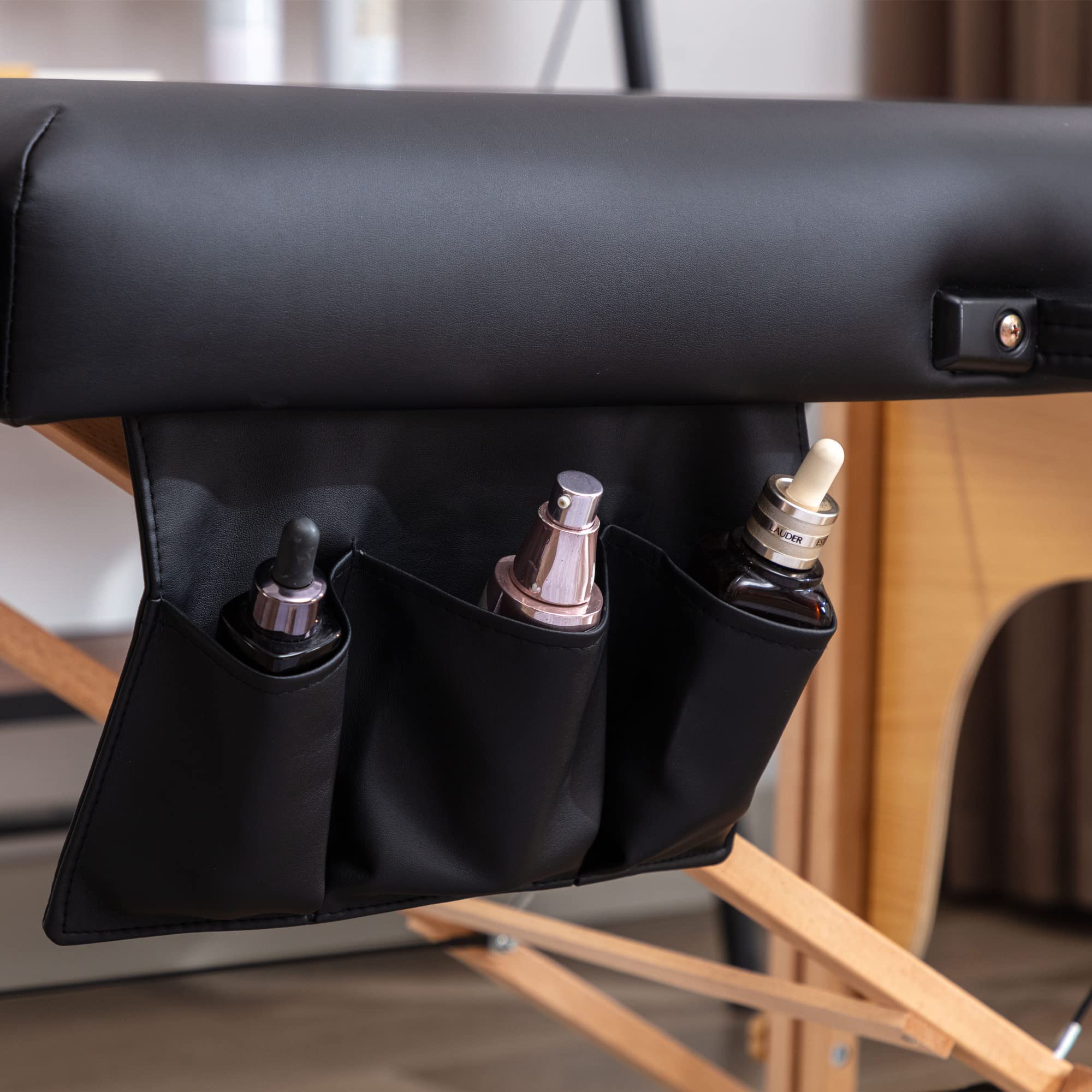 - ��Excellent in Details��: The massage table cover is draped in luxurious PU leather. durable. soft. and easy to clean. The secure lock ensures the safe and convenient carrying of the massage bed. Besides. When you purchase this massage bed it will come with a carrying case. a side pouch for oils. adjustable head rest cradle and other free accessories included.