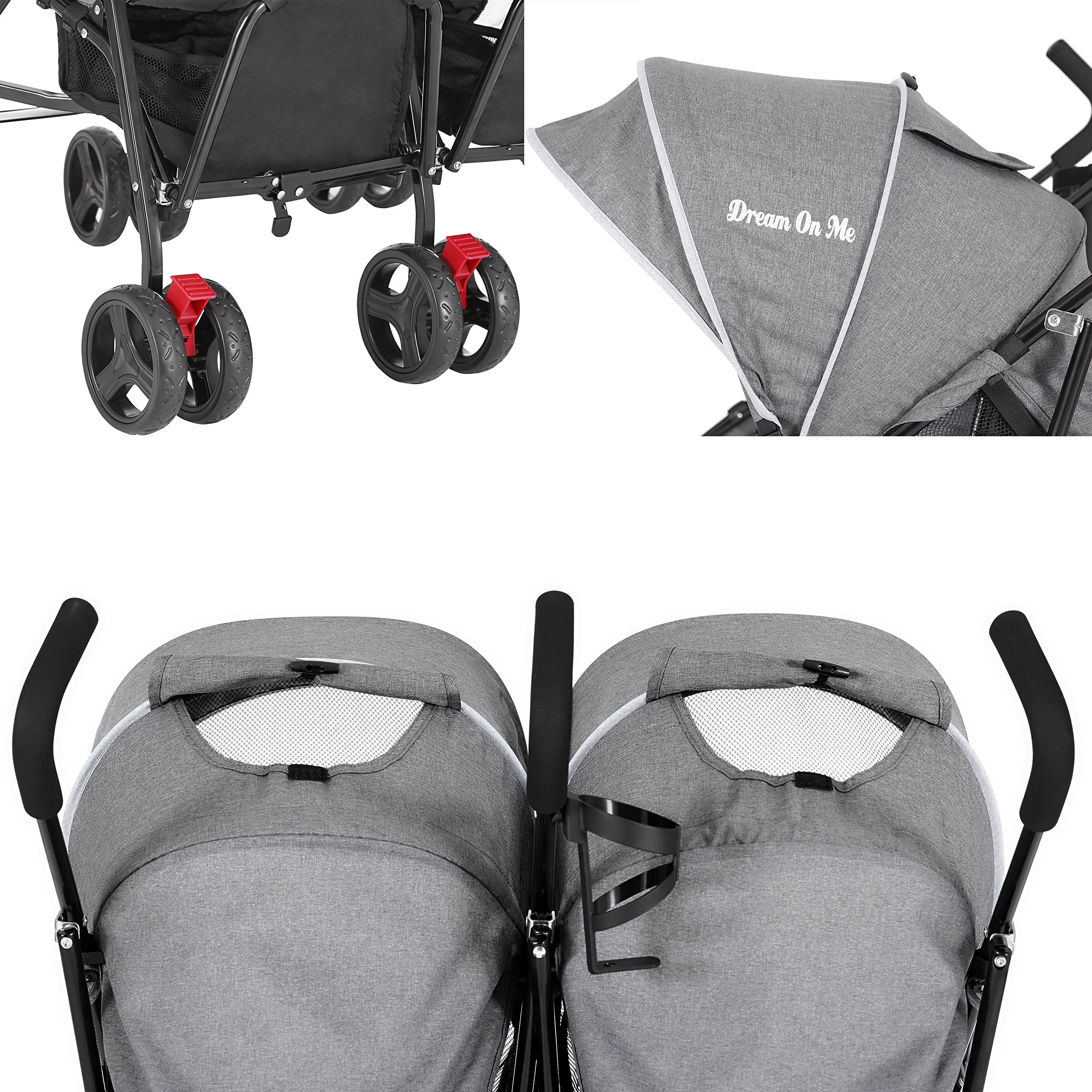- FUNCTIONAL SEATS: The two front-facing seats are perfect for twins or different age siblings & have generous recline footrests. Large adjustable hoods with mesh inserts allow extra ventilation