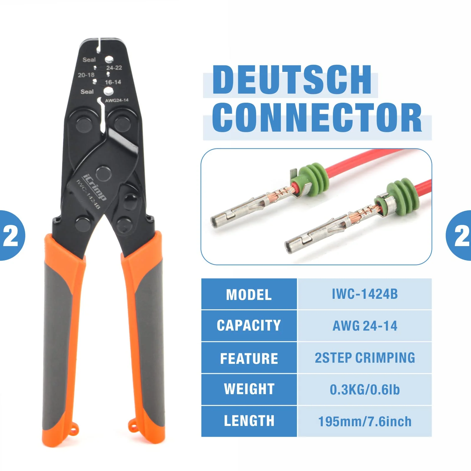 - Deutsch Crimping Tools: IWD-16 & IWD-20 ratcheting Deutsch crimpers for use with Size 16 & Size 20 Deutsch solid contacts and pins(closed barrel). Makes 4 way indent. 8 impression crimping result.