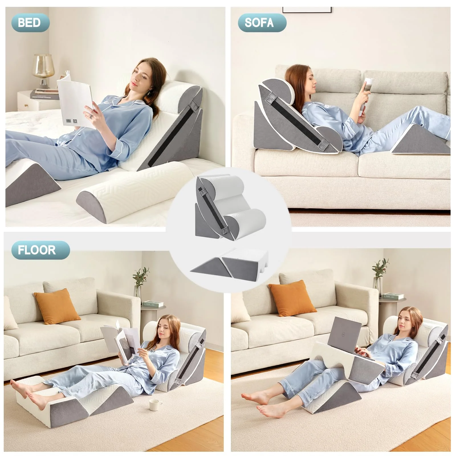 - ��MULTIFUNCTIONAL BED WEDGE PILLOW SET��Yojoker surgery pillow offers 6 parts for customizable combinations. The back pillow with adjustable extension magic tape ensures your perfect comfort position. while the leg pillow doubles as a convenient table. More than 16 ways to use it for more of your needs. It will provide you with all-around support for comfortable posture while reading. surfing the web. being pregnant and sleeping.