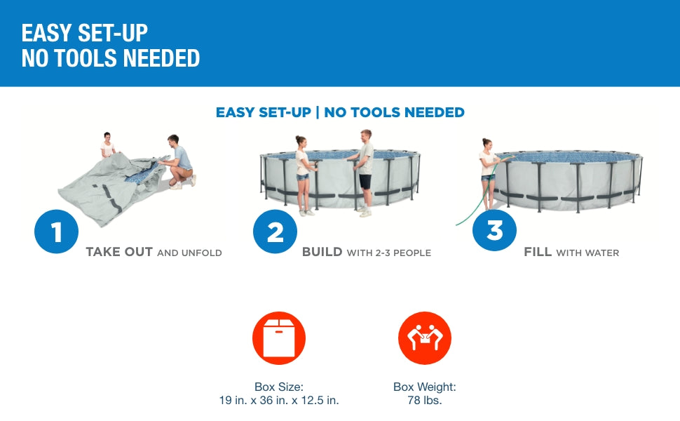 - EASY TO ASSEMBLE: No tools are required to install this above ground pool in your backyard. A flow-controlled drain valve provides a simple solution for emptying the excess water.