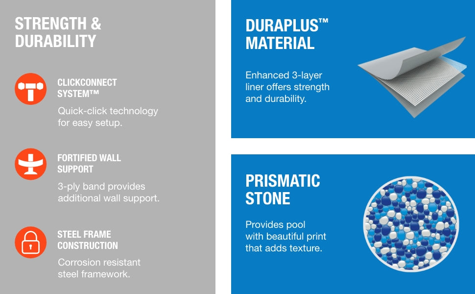 - SUPERIOR FRAME DESIGN: A rust and corrosion-resistant coating protects the pool from UV and abrasion damage. A 3-ply PVC support band surrounds the pool for additional stability.