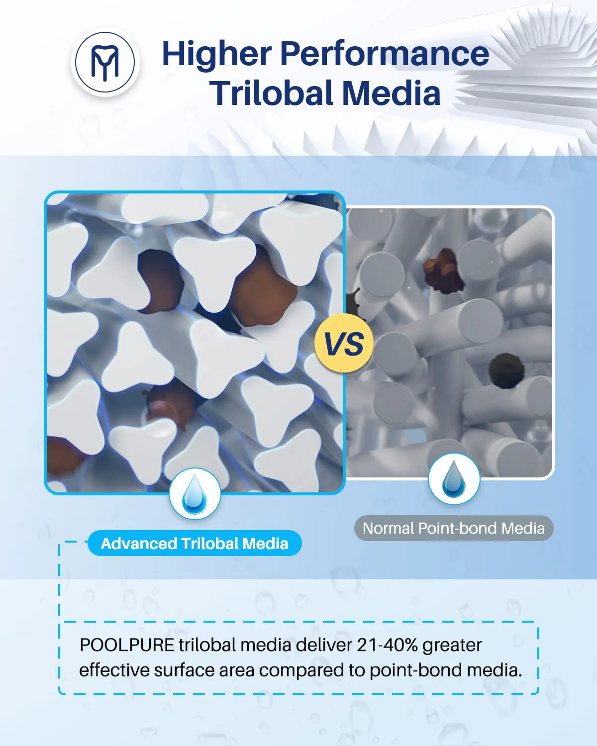 - POWERFUL DIRT HOLDING CAPACITY: The unique trilobal filtration fabric has a greater effective surface area. which can increase back press- sure throughout your entire filtration system. and provide you with clean. fresh and clear water.