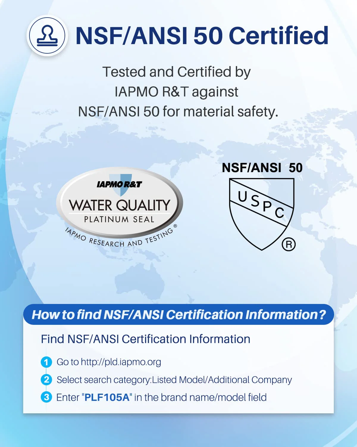 - NSF/ANSI 50 CERTIFIED: Our Pool and Spa filter is tested and certified by IAPMO against NSF/ANSI 50 for safe material. The filter fabric with a precision of 50 microns can remove hair. leaves. dust. sediment. sand and other fine particles.