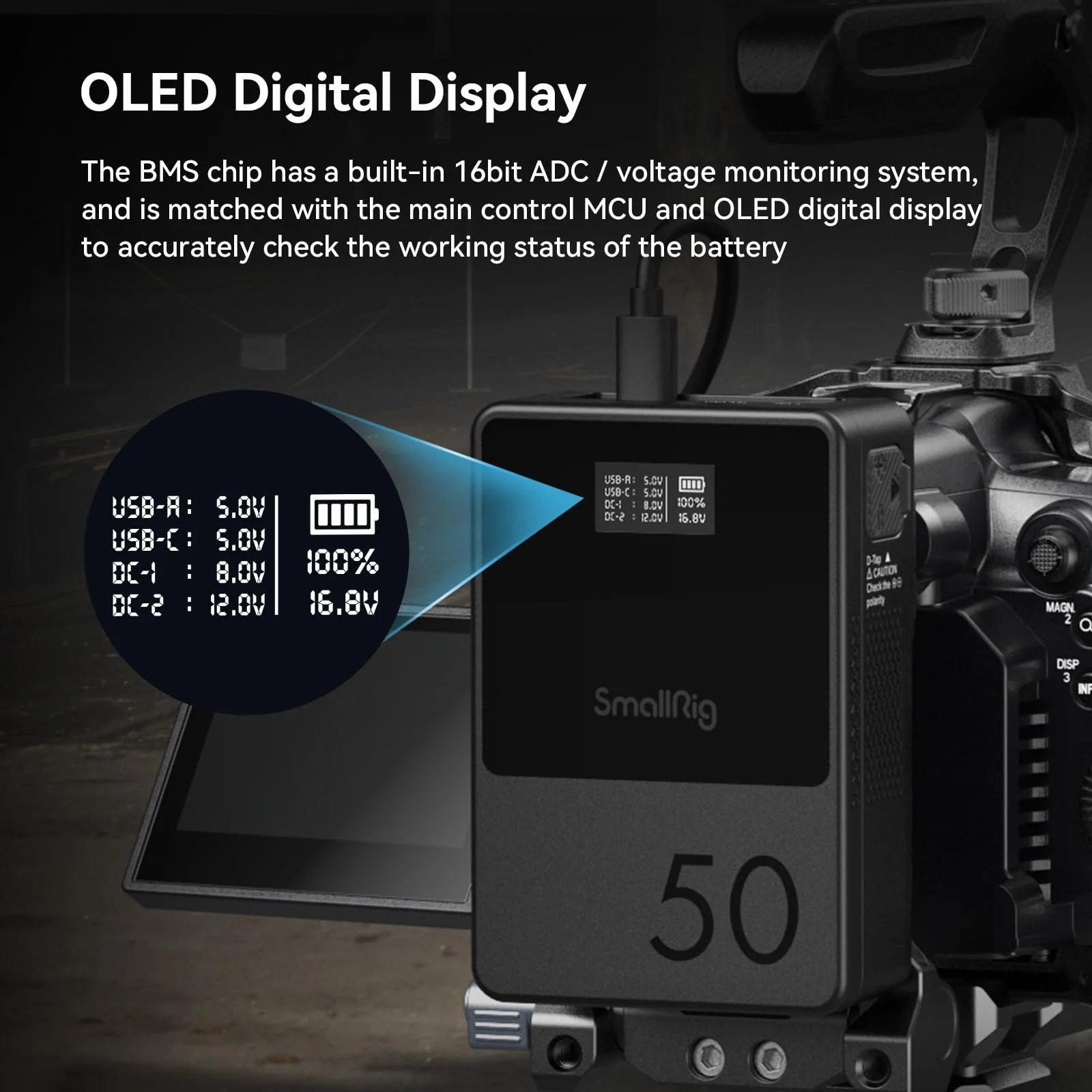 - Bi-direction PD Fast-Charging: The built-in BMS intelligent chip of SmallRig V-lock battery VB50 supports muti-protocol fast charging (such as PD / QC / SCP / PPS / APPLE-2.4A etc.). it supports high power USB-C bi-directional PD fast charging up to 45W. The USB-C port delivers 45W PD fast charging for your smartphones. tablets and laptops. making your charging faster.