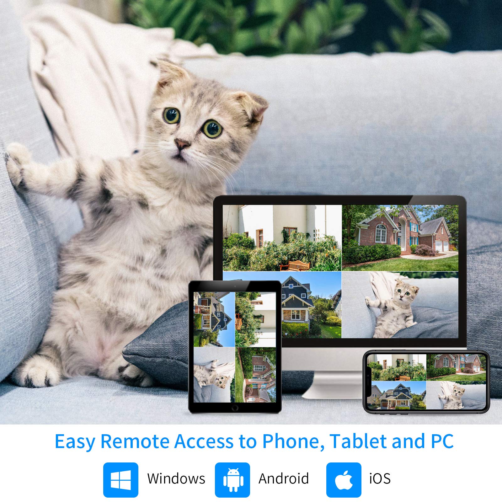 1. This All-in-One 8 Channel NVR Kit Allows 4 Outdoor 1080P Cameras to Connect and Set Up in Just Minutes. No Need Wires Anymore. No Exposed Lines Anymore. More Beautiful. More Hidden. More Safely.