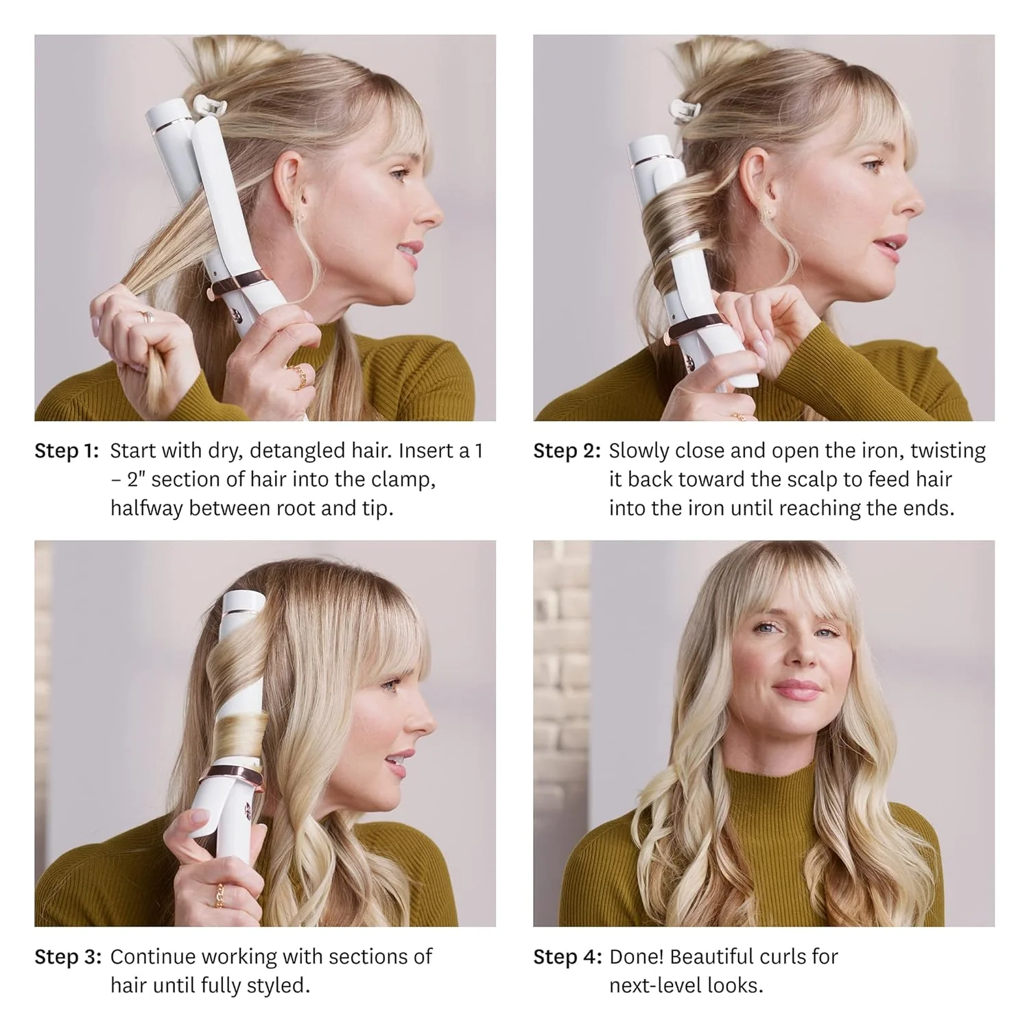 In a masterstroke of styling. SinglePass Curl creates sensational spirals. waves and curls with just one pass. Powered by Digital T3 SinglePass technology. the iron maintains a consistent temperature. offers smooth gliding and delivers lustrous. long-lasting curls every time. It's the effortless and flawless way to add bends. One hour auto off.