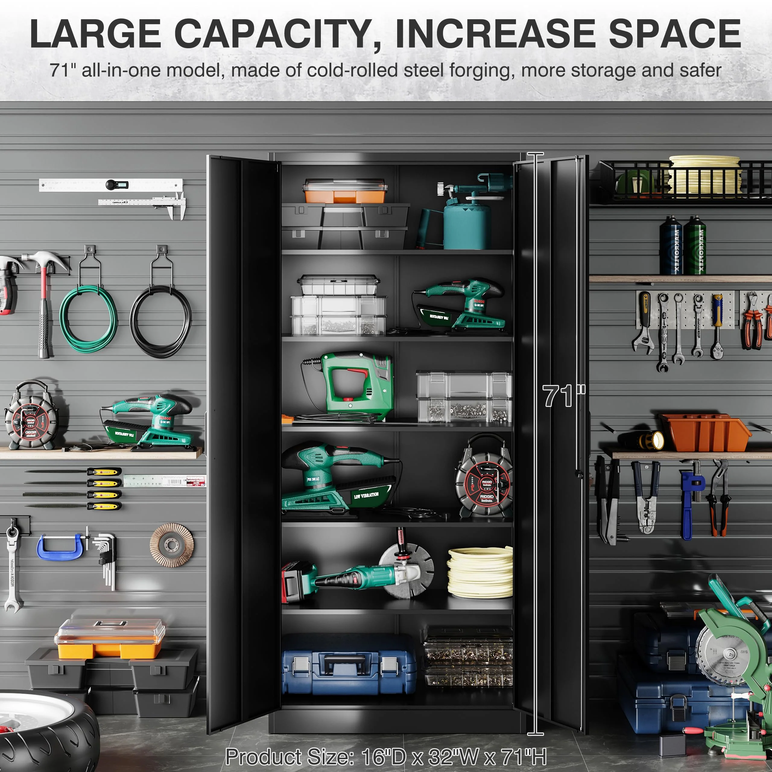 - ��Adjustable Shelf Design��: The garage cabinets storage uses 5 adjustable shelves. You can move to the desired height by adjusting the shelf pegs according to the size of the things. so that you can divide the office storage cabinet space distribution. You can also design garage storage flexibly and remove the shelves for more standing room