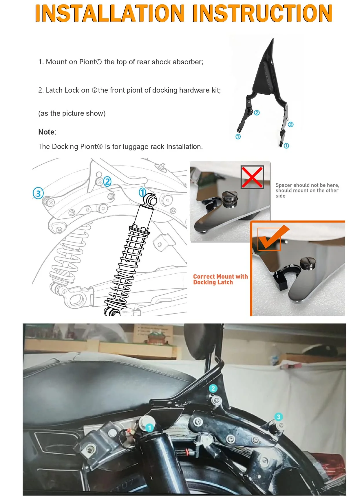 - RESCUE YOUR MOTORCYCLE EXTERIOR w/ FJPACEMT: and detailing your passenger backrest. Our protective sissy bars are specially designed with premium-quality stainless steel that supports safety concerns. The solid connectors to your docking hardware and shock absorber areas so they stay in place when you lift up your moto. and the built in three pieces makes for easy removal and cleaning