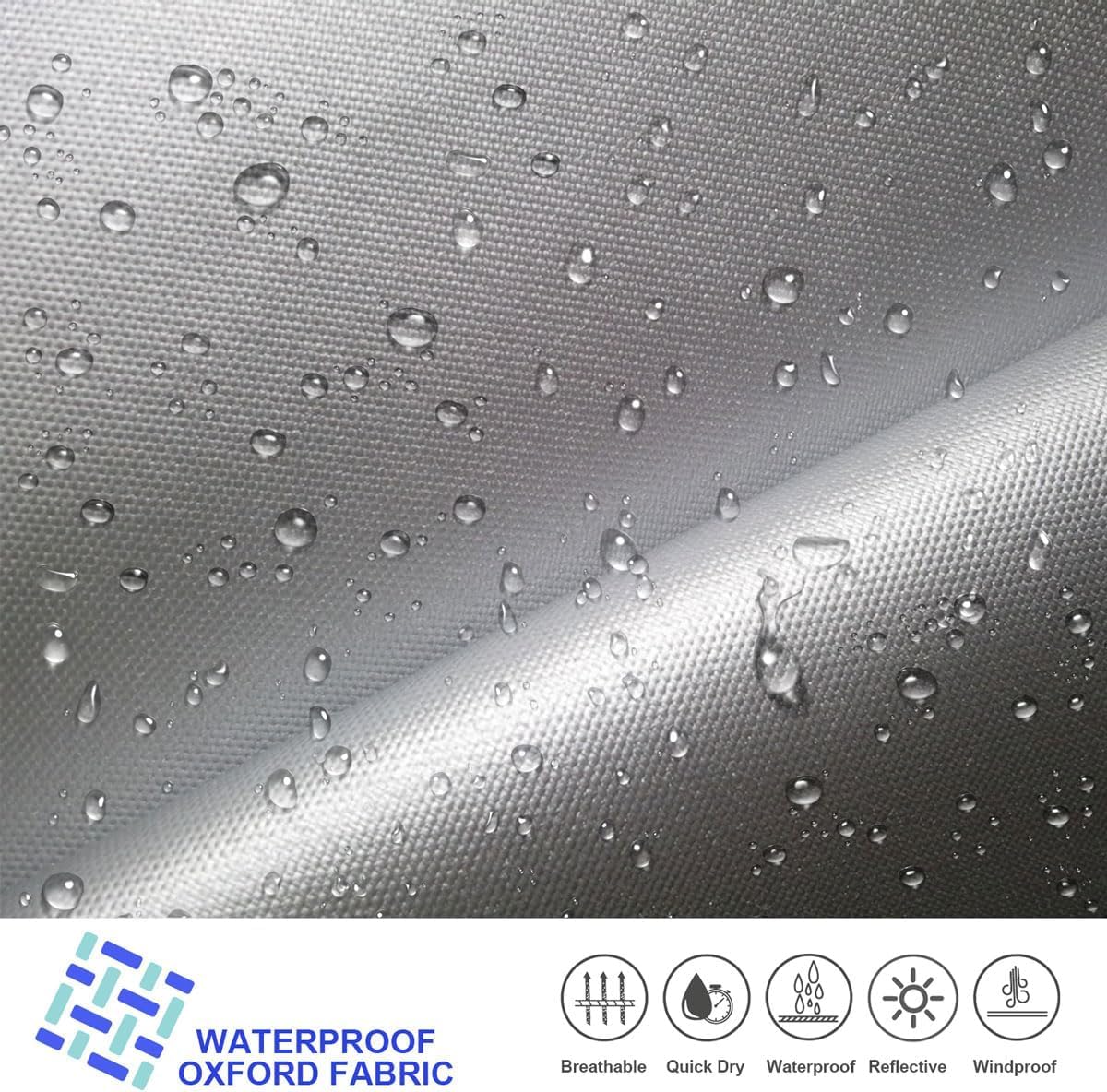 - ��Tear-Resistant Fabric��: ��:210D Oxford is used on the sides. and thicker 300D Oxford is used on the roof and reinforced positions. ��:The fabric is coated with polyurethane and is 100% waterproof. Waterproof depth up to 2K mm.3:Our 210D oxford is thicker than 150D. the anti-aging coating slows down aging. Oxford cloth is more tear-resistant compared to non-woven fabric. and the PU coating is more water-resistant. making the RV cover last longer and giving your trailer all-weather protection.