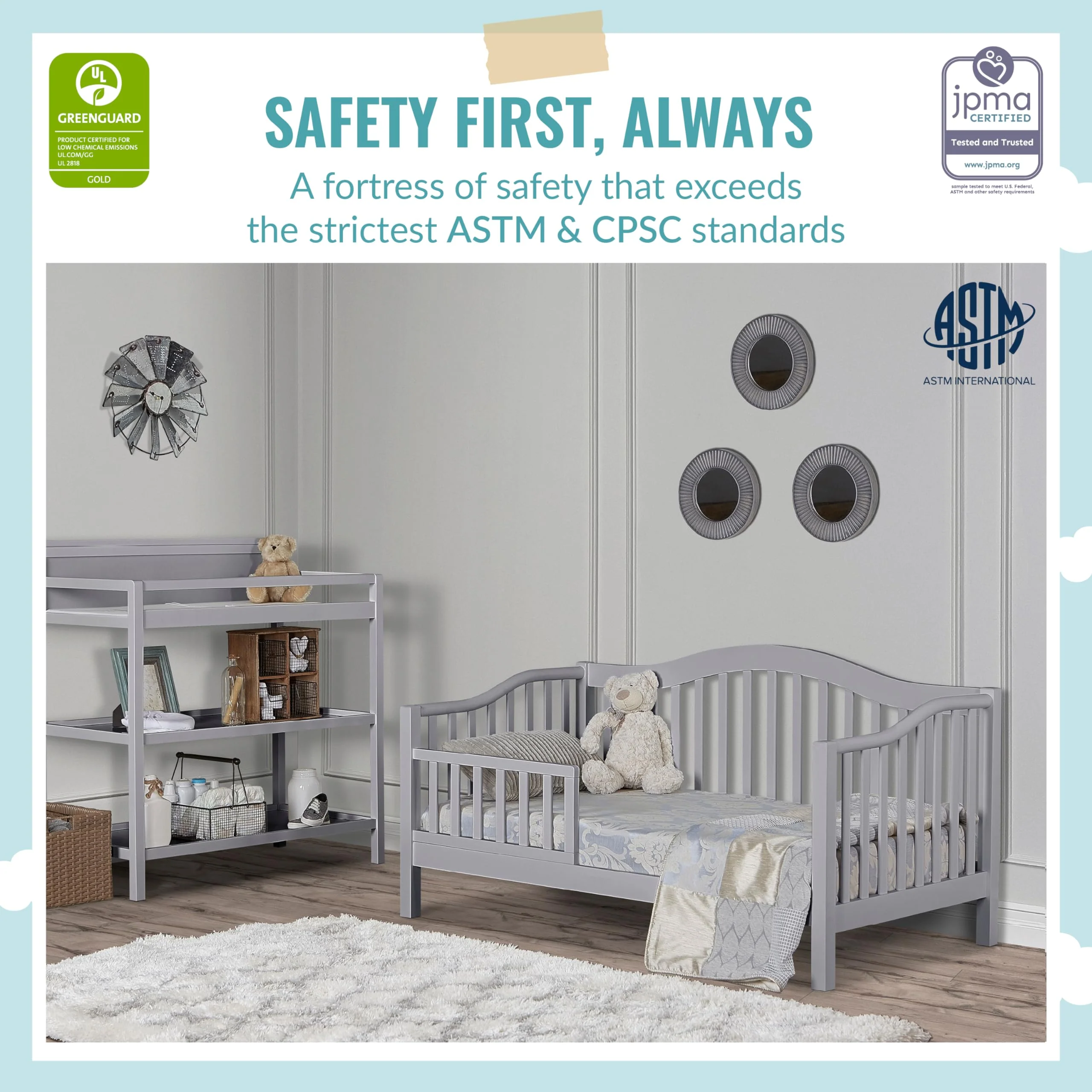 • ALWAYS SAFE: The Austin is JPMA certified and meets/exceeds all applicable ASTM/CPSC standards. Recommended for children 18 months to 5 years old or up to 50 pounds. Only eco-friendly. child-safe water-based paints used