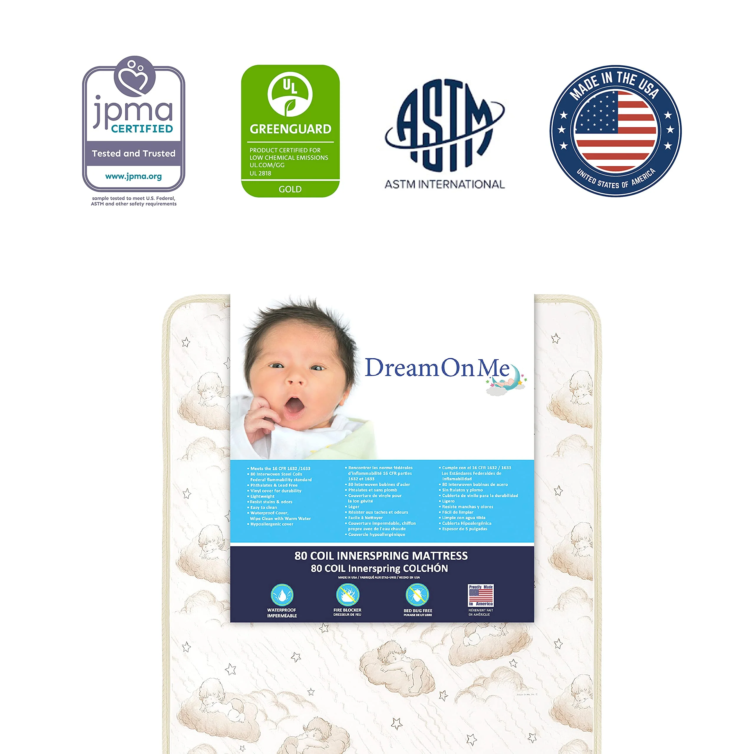 • MATTRESS MATTERS: The Austin comes with a wooden mattress support rails so there is no need for a box spring. Choose any Dream On Me non-toxic. Greenguard certified standard crib mattress for a perfect fit