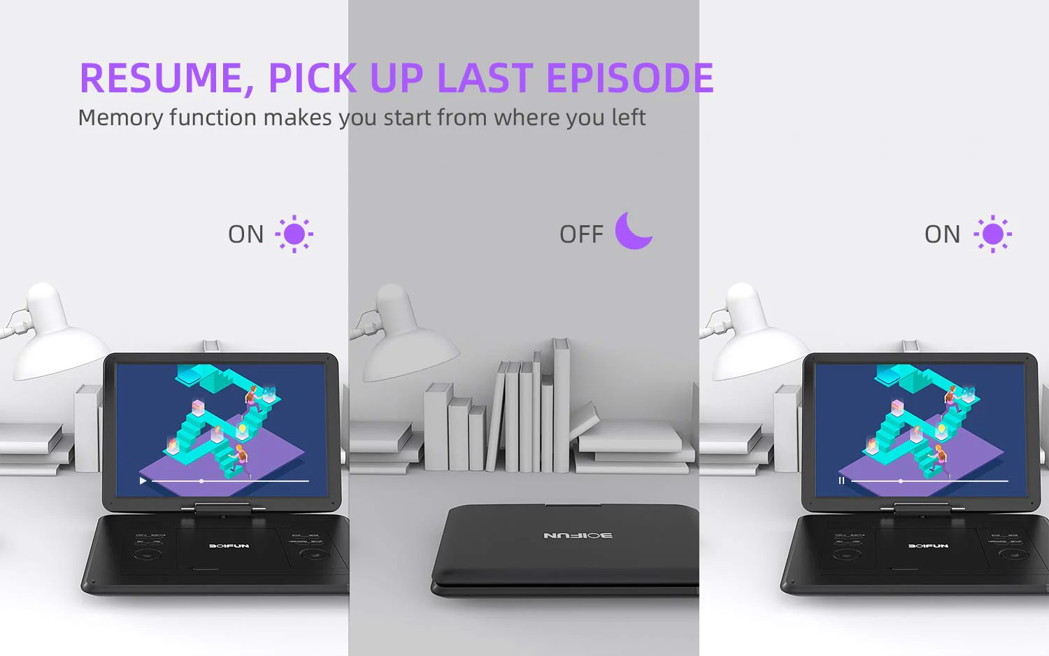 - Humanized Function -- To ensure that customers are not interrupted while using the disc. this portable DVD player has a built-in Anti-Shock function to protect the disc reading process. It can effectively reduce the video interruption caused by shaking.