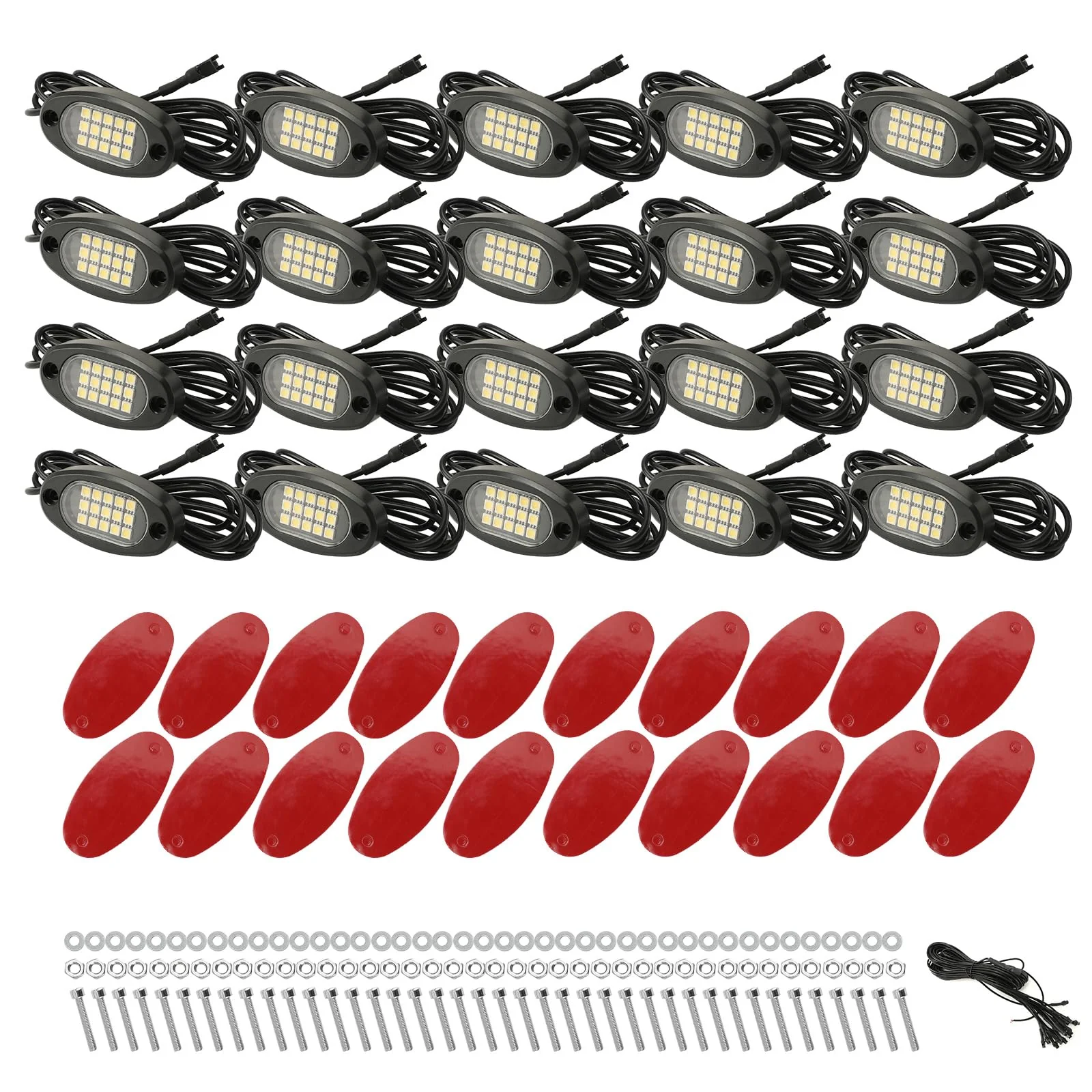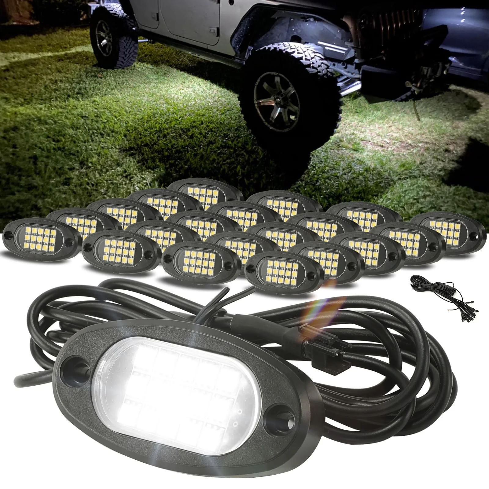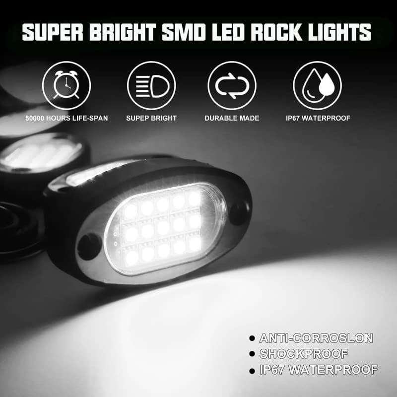 - ��6000K PURE WHITE COLOR&15 LEDS BRIGHT SMD CHIPS��20 Pods White led rock lights. Each rock light equipped with 15 High quality bright SMD led chips. Bright and made for last.