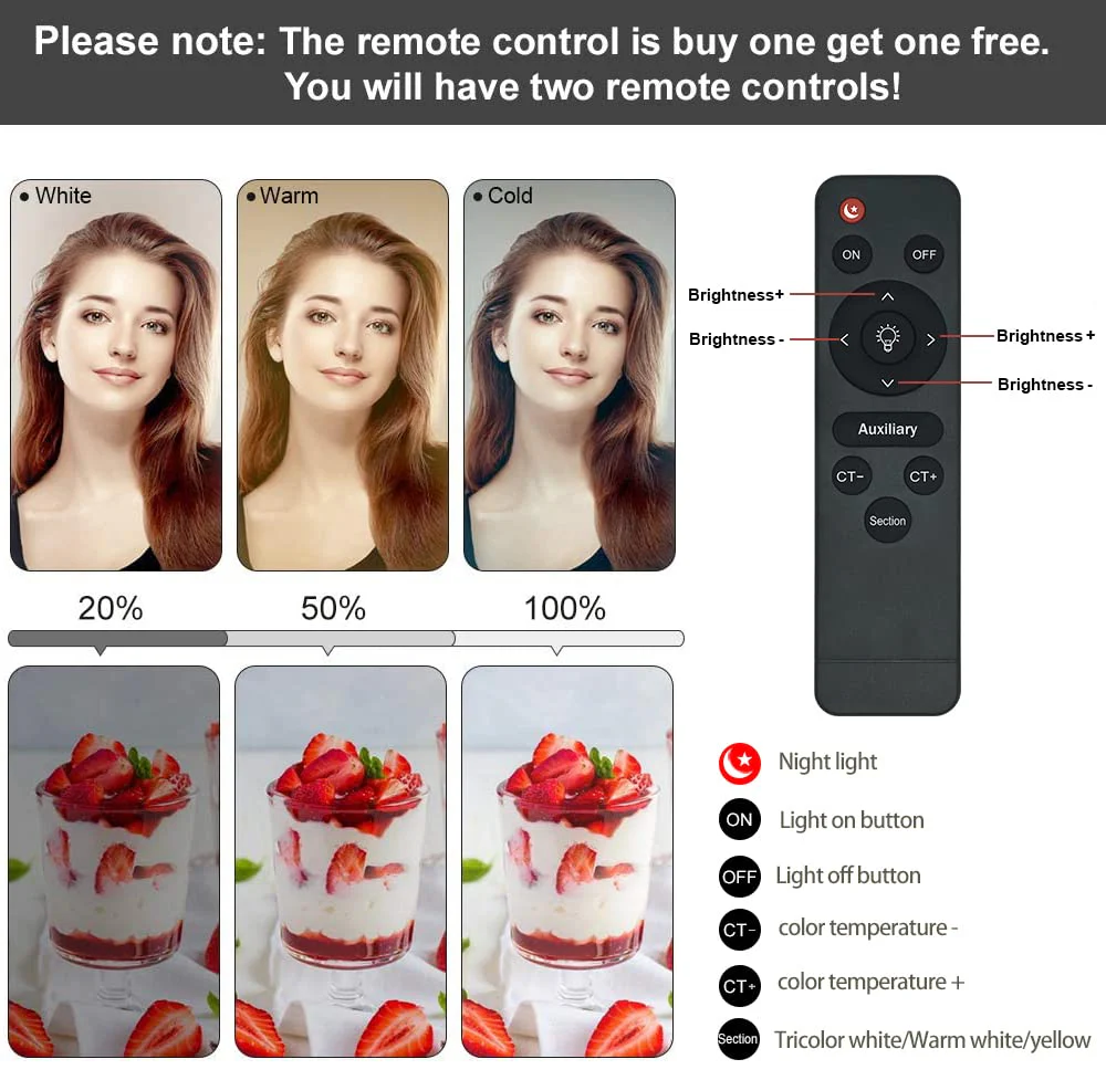 - ��2x Remote Control�� You can turn on and adjust the brightness and color temperature of the softbox lighting via the remote control. Please note that the soft box can be easily adjusted without being too close to the soft box. In addition. if you buy the softbox kit. we will give an additional remote control in case one of the remote controls is broken.