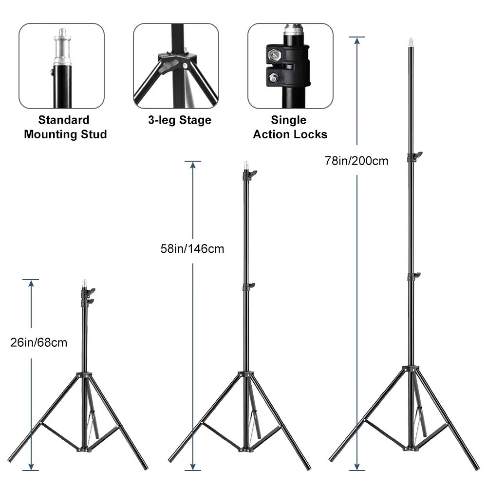 - ��210°Rotatable Head & Adjustable Stand��The studio soft box has an independent locking knob. which can be rotated 210° to adapt to different angles. The top is equipped with 1/4 screw mounting. and the tripod bracket with 3-section column design can extend from 26 inches to 78 inches.