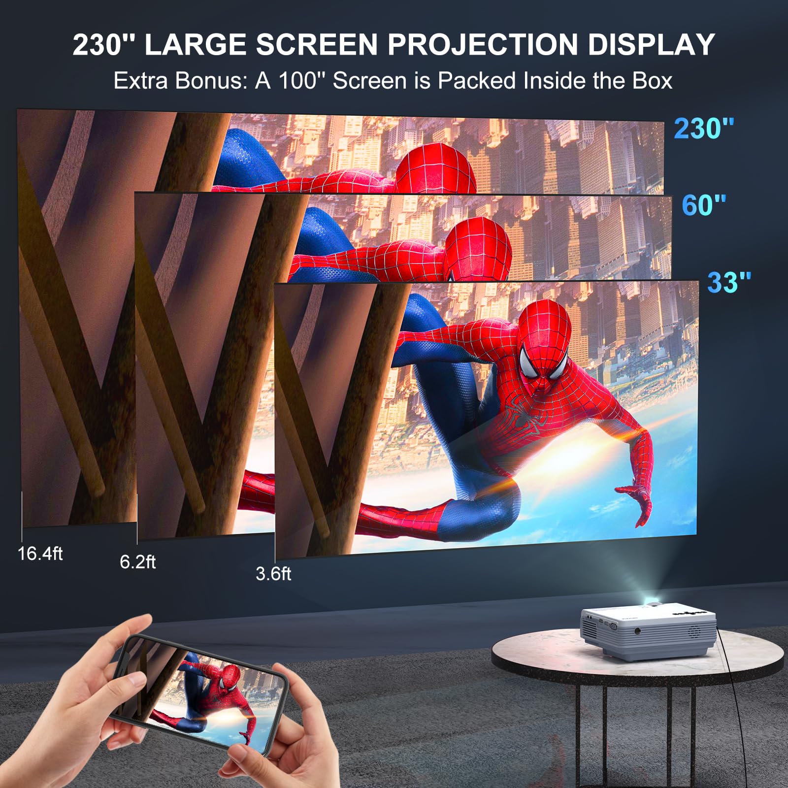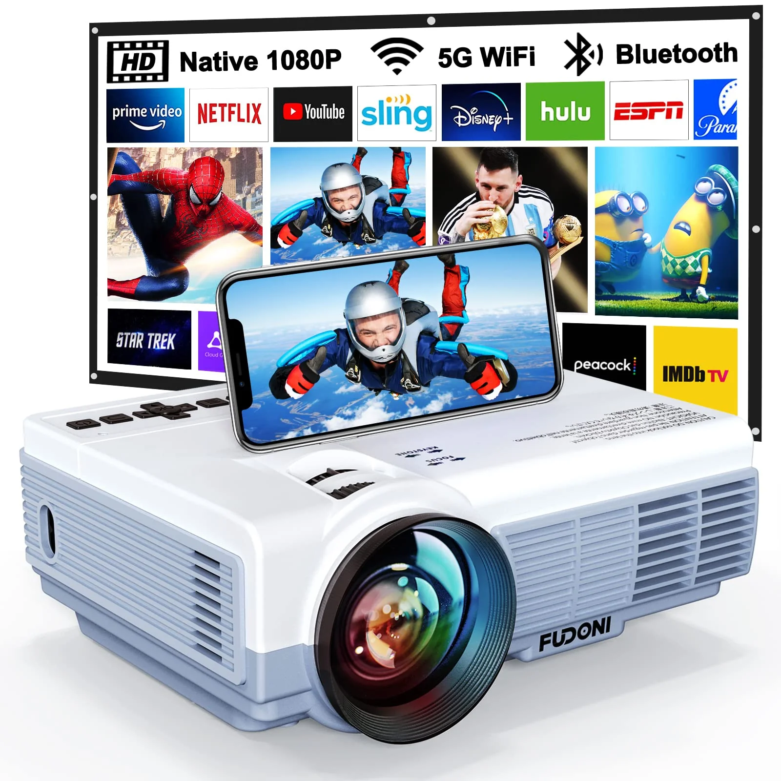 - [5G WiFi and 5.1 Bluetooth Function] Thanks to 5G and 2.4G Dual-Band WiFi function. the projector with WiFi and Bluetooth enjoys a faster wireless speed. wider range. and smoother transmission than other 2.4G single-band projectors. Within 5 seconds it gets connected successfully. With the help of 5.1 Bluetooth chip you can connect the projector with the Bluetooth speaker to improve sound at a party or outdoor entertainment as it offers a stable and fast speed.