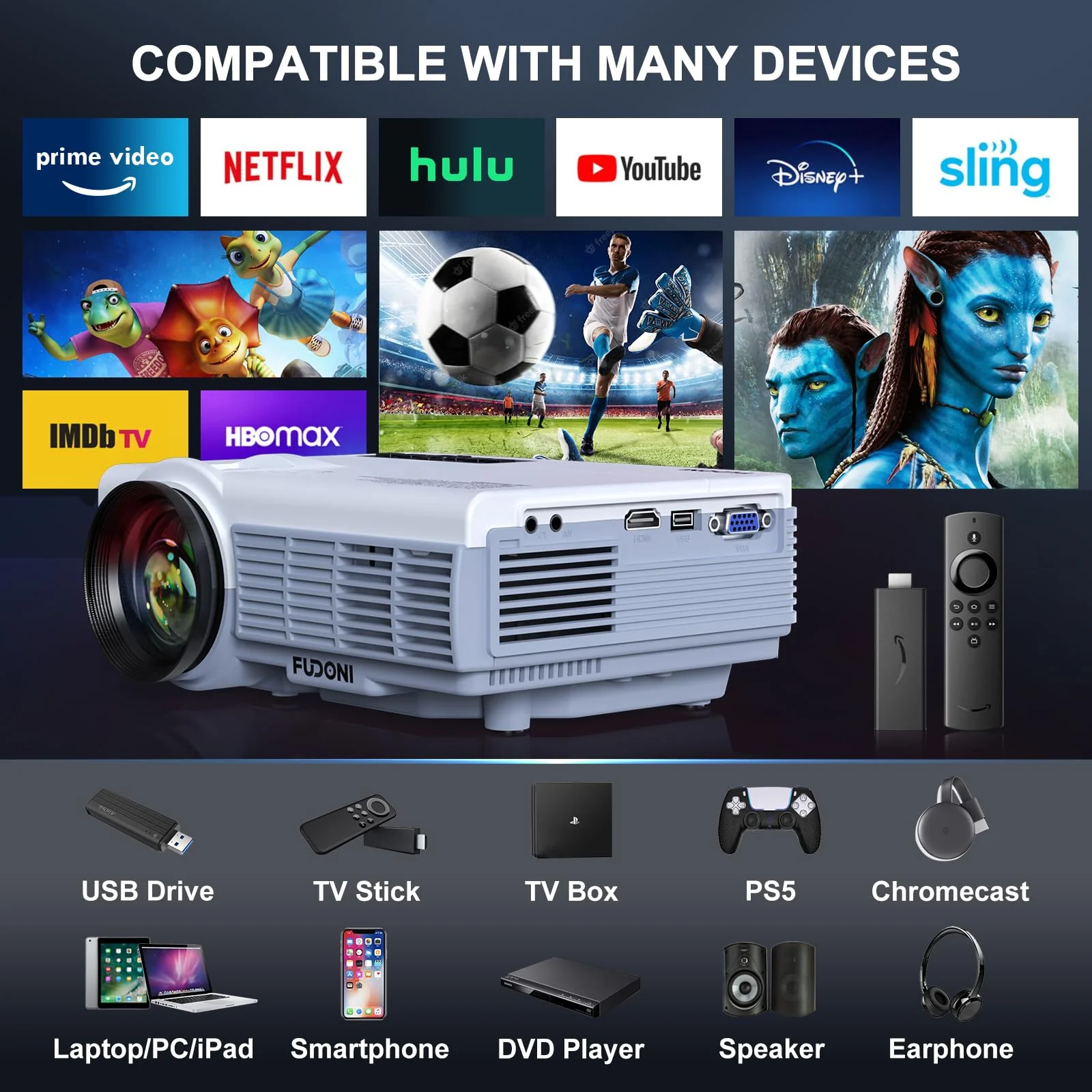 - [Multiple Interfaces and Compatibility] The WiFi projector makes your home electronic devices more dynamic and useful and it is compatible with iPhone. Android phone. Laptop. PC. tablet. Xbox. TV Stick. Roku. Chromecast. DVD. Gaming device. USB Drive. external speaker. earphone. etc. as it contains multiple ports like USB. HDMI. VGA. Audio and AV ports.