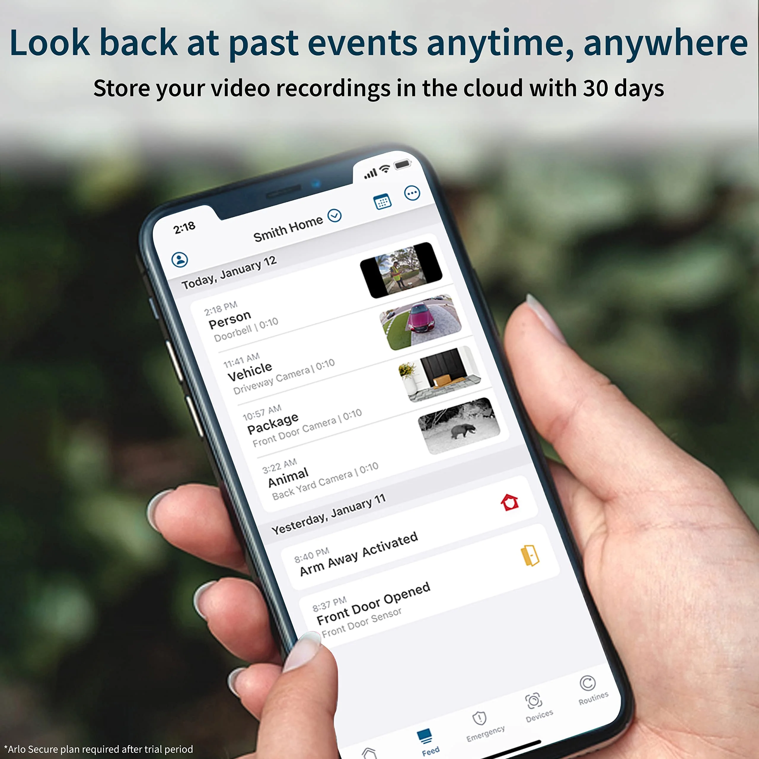 - Smarter alerts. quicker action - With an Arlo Secure plan. receive smarter notifications for people. vehicles. packages. and animals so you can react quickly. right from your phone's lock screen.