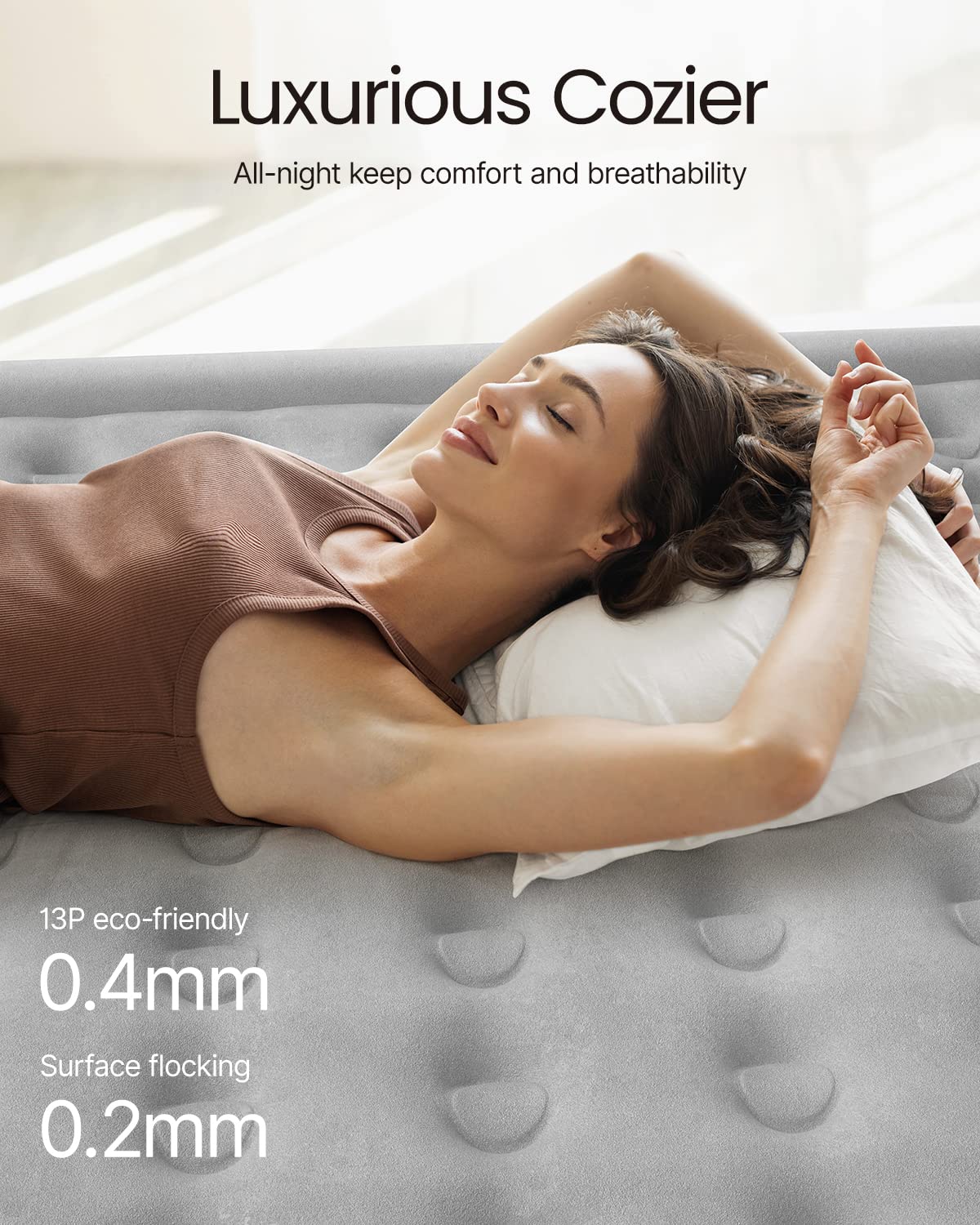 - ?Super Comfort: This 18 high blow up mattress has 40 internal air coils that provide even support from head to toe. so you can relax or sleep anywhere without worrying about tipping over or collapsing. Its top surface boasts an extra flocked layer that provides luxurious softness for a comfortable night's sleep.