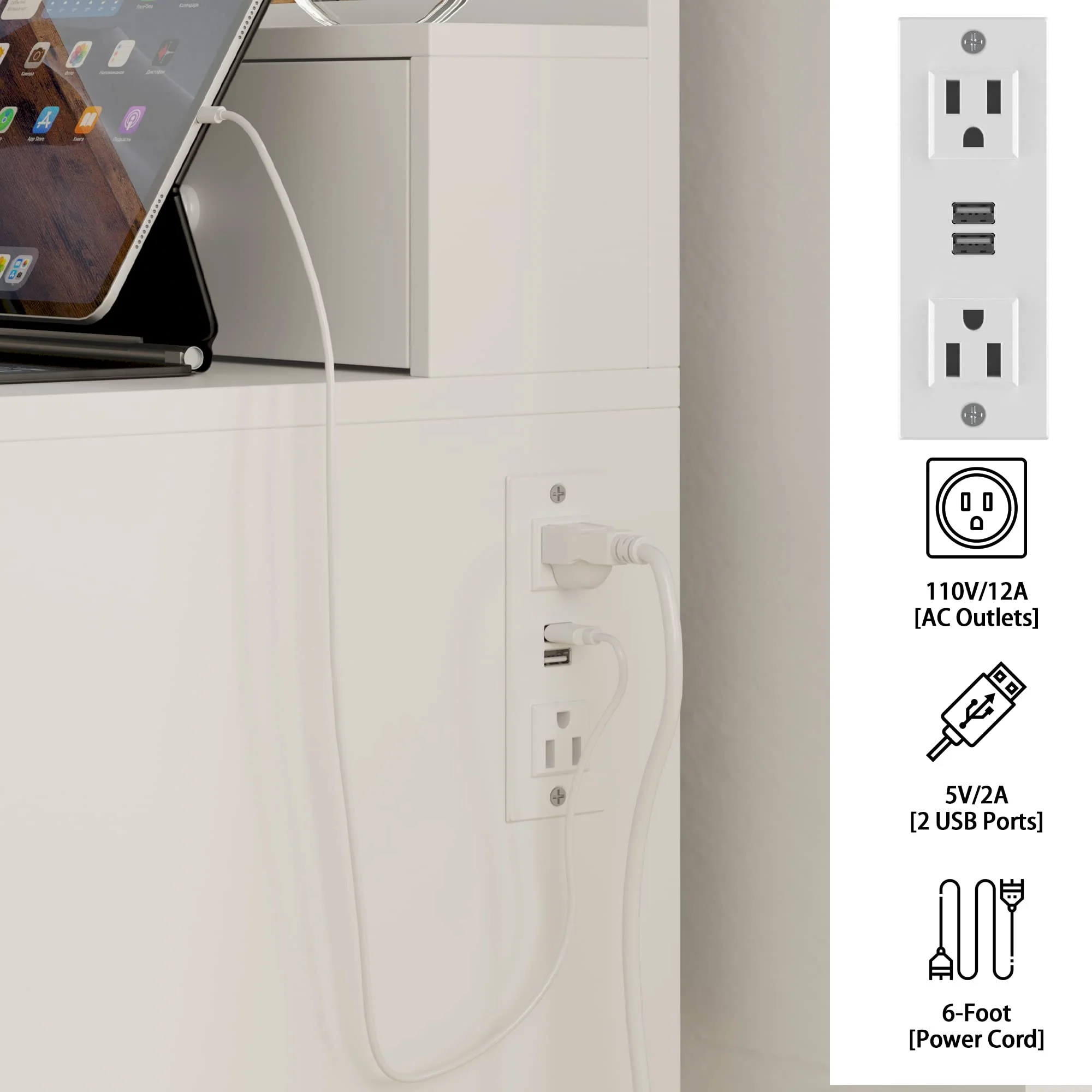 - Vanity Table with Charging Station: This makeup vanity features a charging station. includes 2 standard plug sockets and 2 USB ports. which can be more convenient to connect your hair dryer. curling iron. and it can also charge your phone. tablet or other mobile devices. allowing you to take a beautiful selfie when you finished your makeup