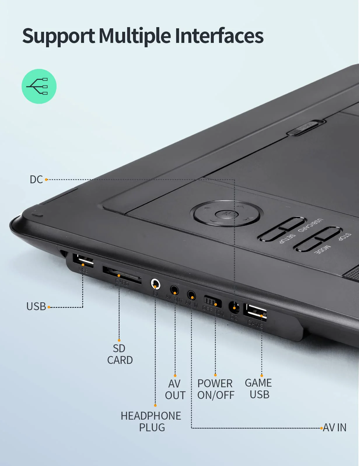 - ��Flexible Rotating Screen��The HD screen of the DVD player can rotate 270°. you can freely switch the angle as you need to get the perfect viewing angle.