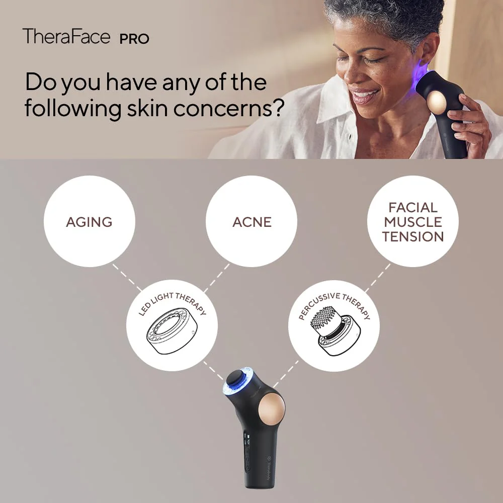 - Professional Grade Care: LED light treatment and percussive treatments at home. No need for trips to the salon with TheraFace LED providing all the same benefits with one handheld device.
