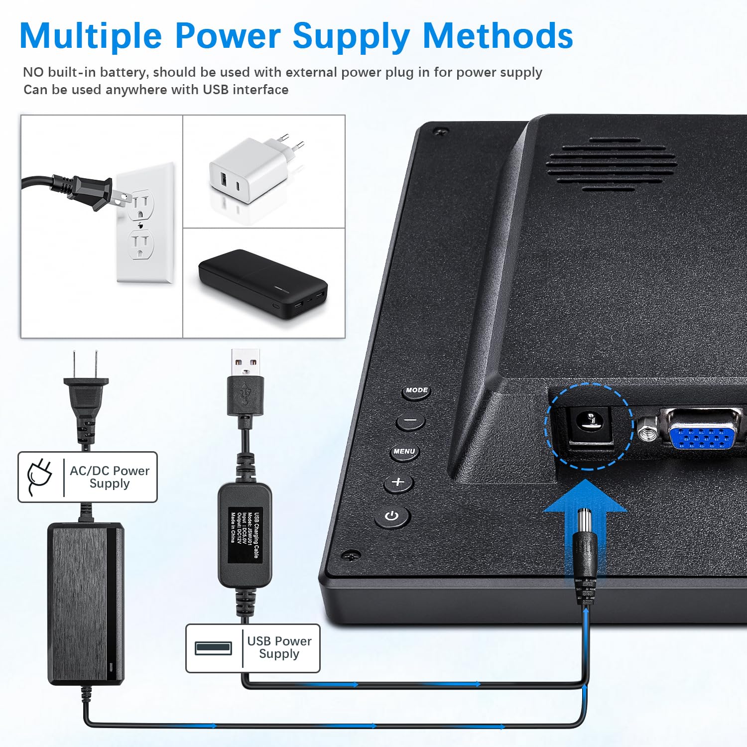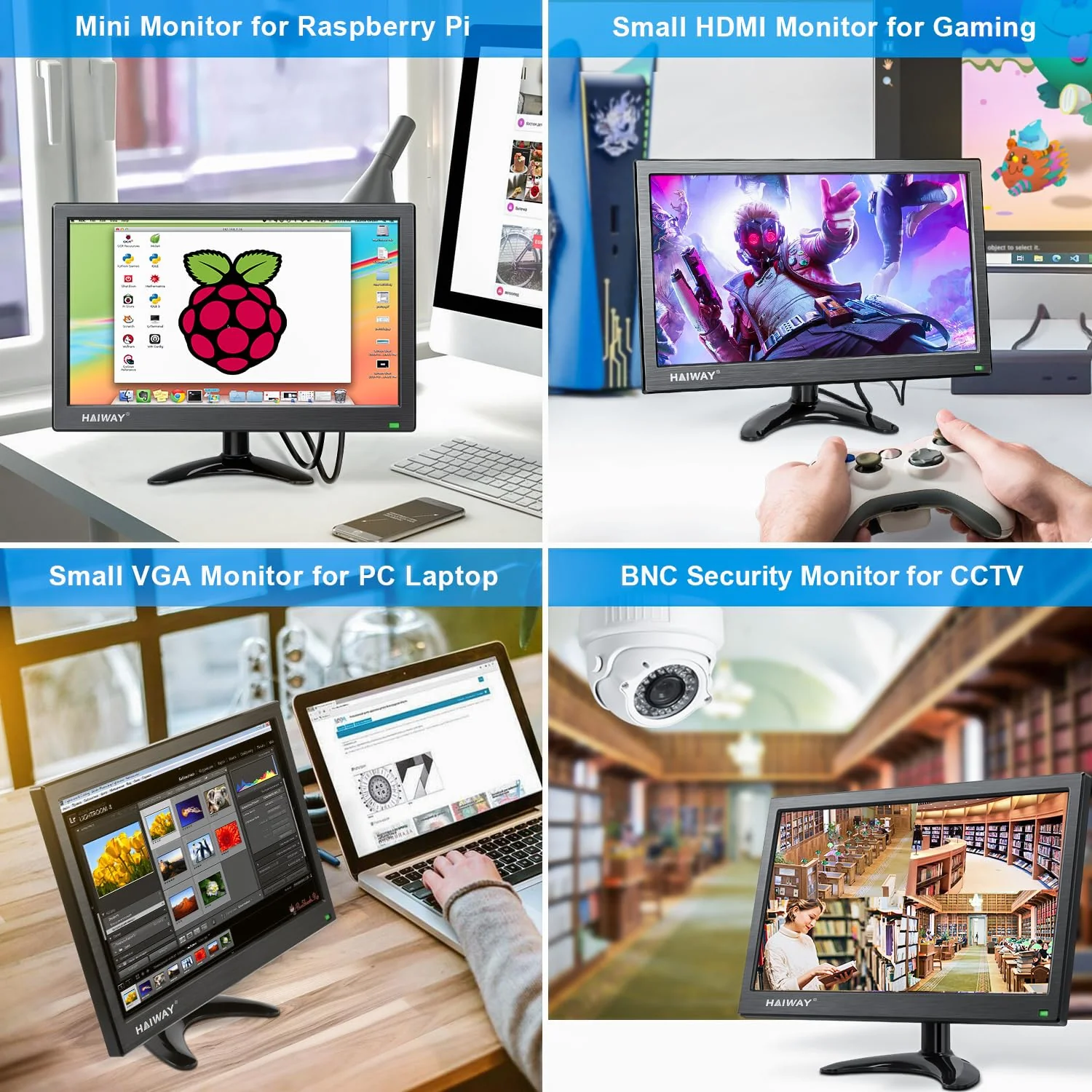- ��Upgrade and Update��:In addition to the AC-DC power adapter. it is also equipped with a USB charging cable. which is greatly improved convenient to use. and can be used anywhere with USB interface. We are the cctv bnc monitor direct manufacturer of Haiway. we strive to providing our customers with affordable and reliable products as well as worry free customer service.