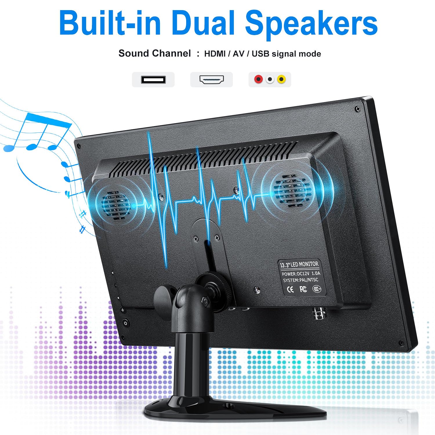 - ��Easy to use & Built-in Speakers�� This mini monitor is slim and lightweight. with a variety of convenient designs. Button design makes the operation more convenient; you can also use the remote control to real-time control this monitor. Multi-language OSD menu can complete various settings. such as Brightness. Clarity. Language...; Built-in dual speakers that can produce the best sound available. which is solid and great for watching shows with others.