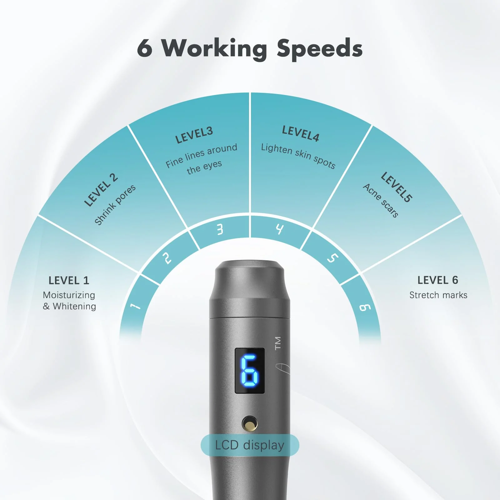 - ��Powerful Features�� The Dr.Pen Ultima M8 can be used wirelessly or with a cord. Compared to manual microneedles. the electric microneedle pen is more convenient and portable. It offers six speed modes. adjustable needle length. and is suitable for various skin concerns. The upgraded three-slot design ensures a tight and secure connection between the needle heads and the device. ensuring safety and reliability.