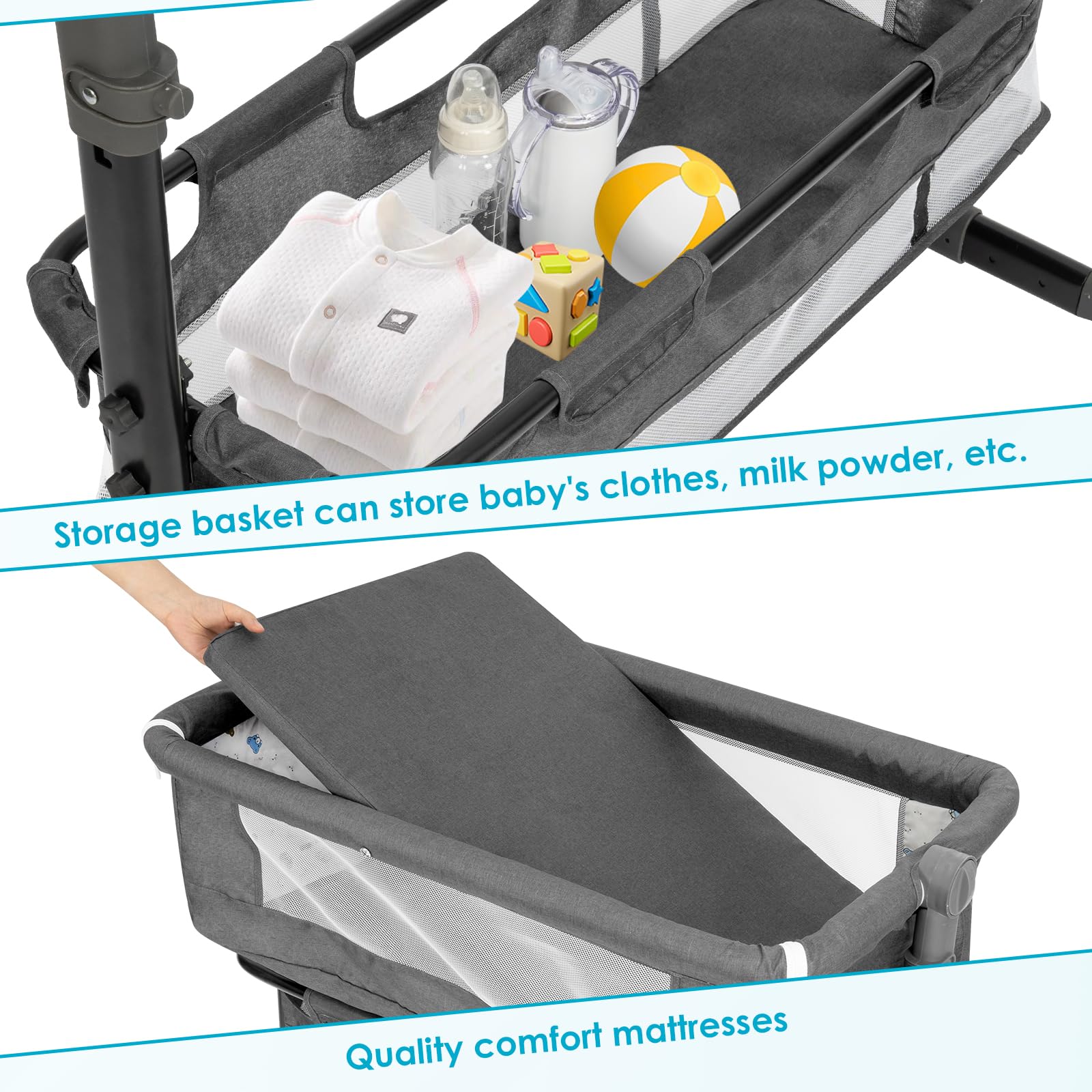 - ��Large Storage Space��There is a large storage space underneath the baby bassinet. parents can put their frequently used baby care products in it. and the side pockets are carefully designed to hold bottles.