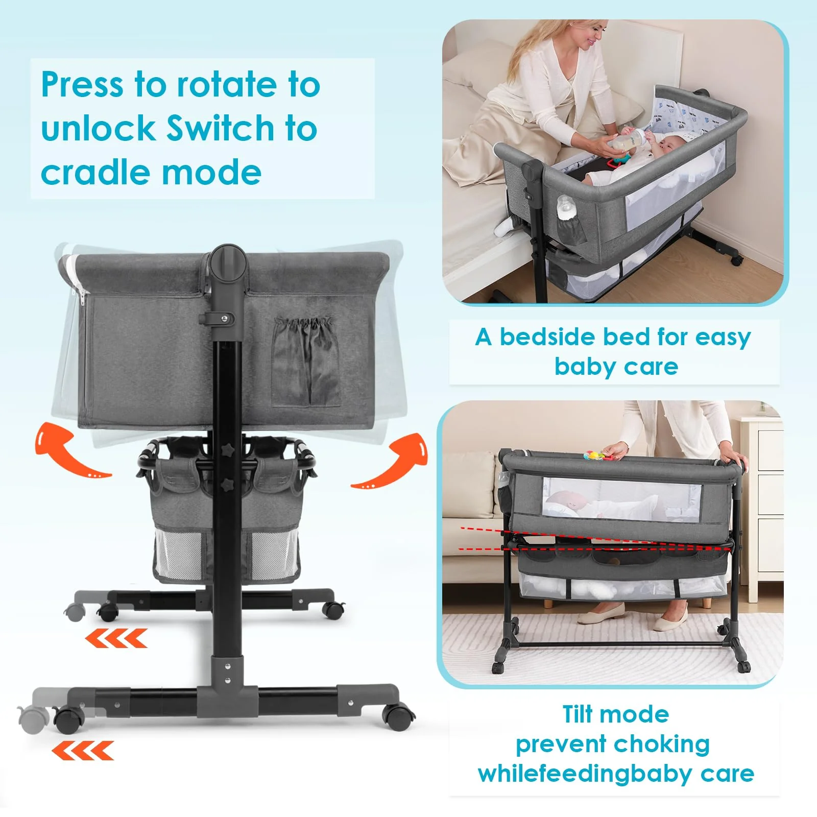 - ��Multi-functional Design��bedside bassinet for baby side sleeper can be used as a bedside sleeper. with mosquito net. standalone bassinet. and tilting nursing bed. you can easily push the crib anywhere and lock the wheels to make sure your baby is safe.
