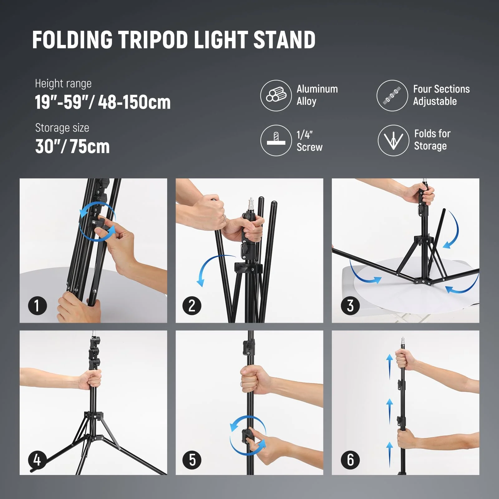 - Please note: 1. The light stand is packed in a separate box inside the big package box (under the ring light box at the extreme bottom of the box)as shown in the 2nd picture. If you can't find it. please contact seller customer service; 2. Instructions for unfolding the stand are in the 8th picture. The legs are upwards. so please unfold the legs upside down