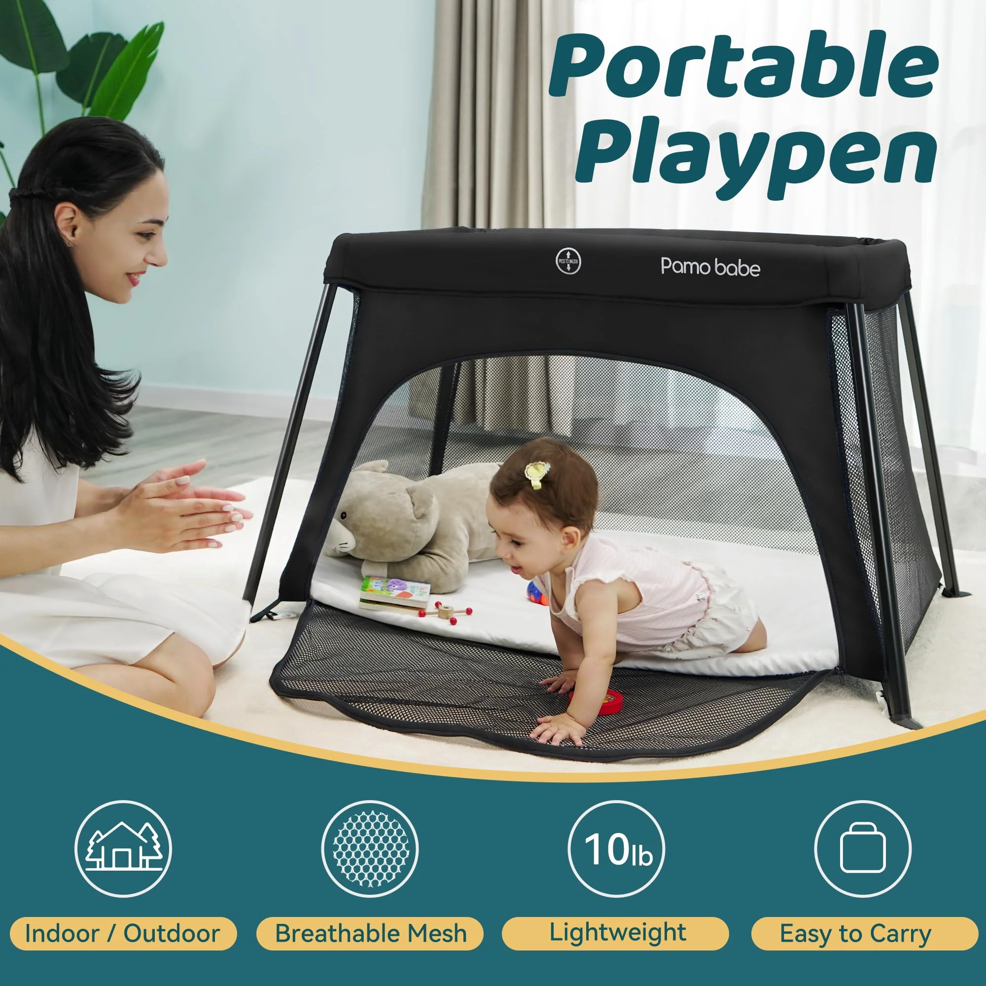 - ��Safety & Lightweight��- The net weight is only 12 lbs. Lightweight. Reliable and built for endurance. it is made of a sturdy frame. polyester fabric. and reinforced stitching. The four corners of the bottom are evenly stressed to prevent the playard from tilting and enhance stability. so that your baby can play safely.