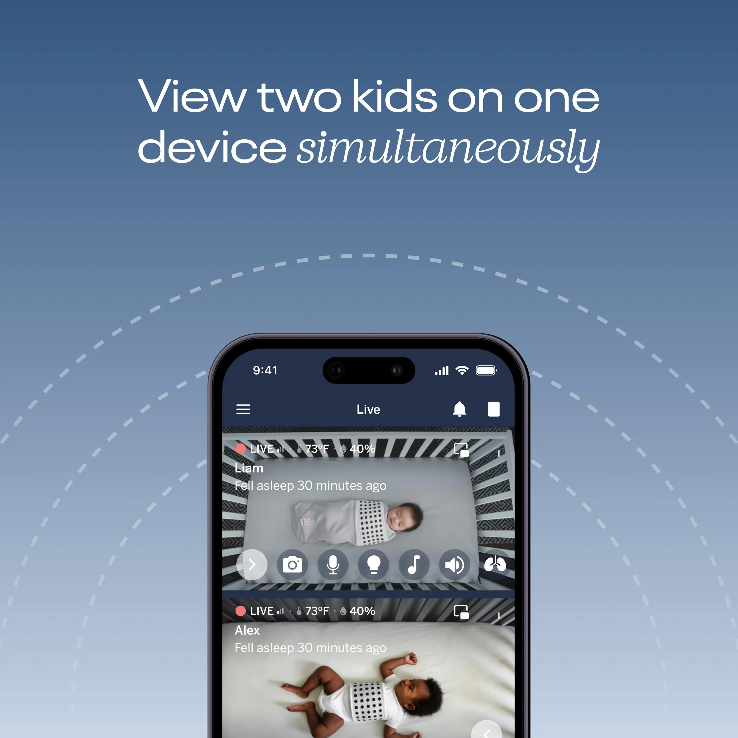 - 1080p HD video allows you see baby from anywhere using the app. Nanit is the ONLY smart monitor with a Split Screen feature that allows users to view two cameras on one screen