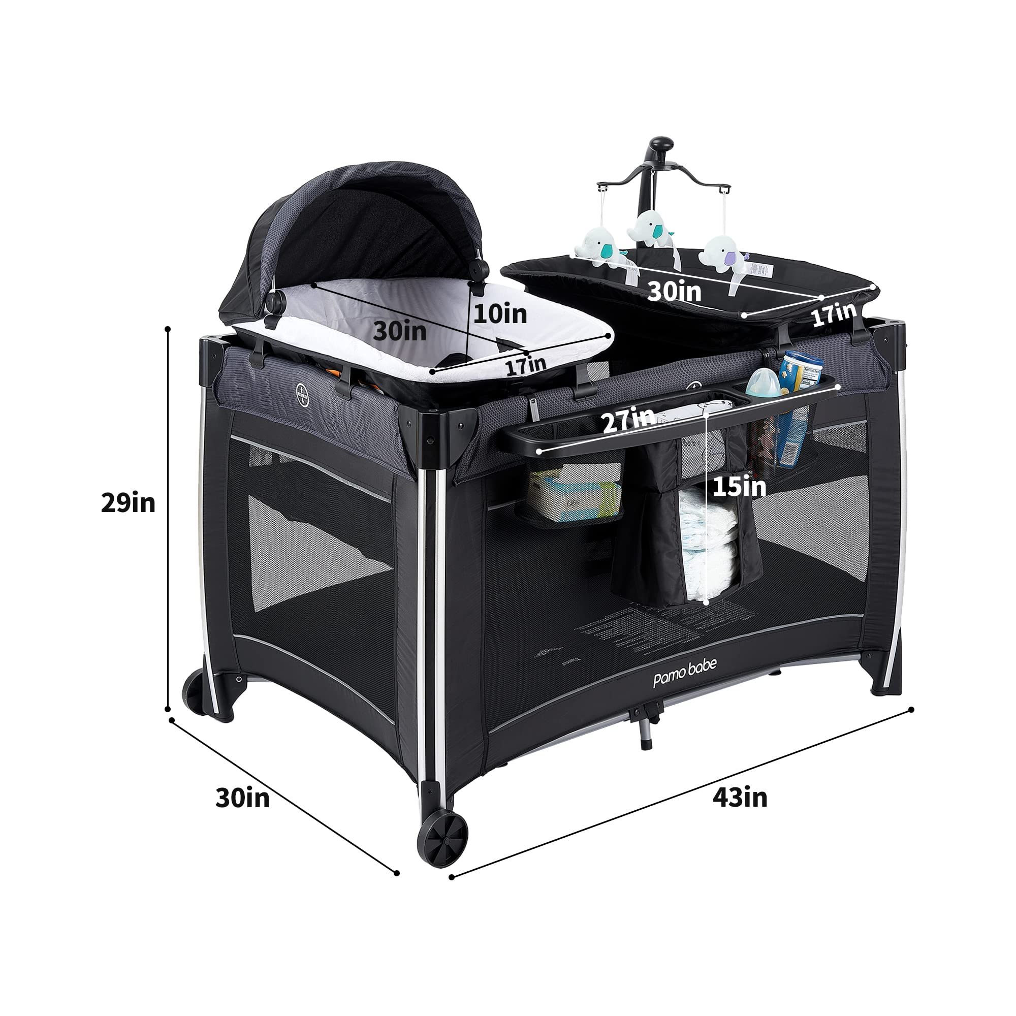 - ��Multi-functional Baby Playpen��- Pamo Babe versatile cribs cater to your many needs and accompany your child's growth. Multi-functional baby travel playard. combined with cradle bed. changing table. cute toys and activity center.