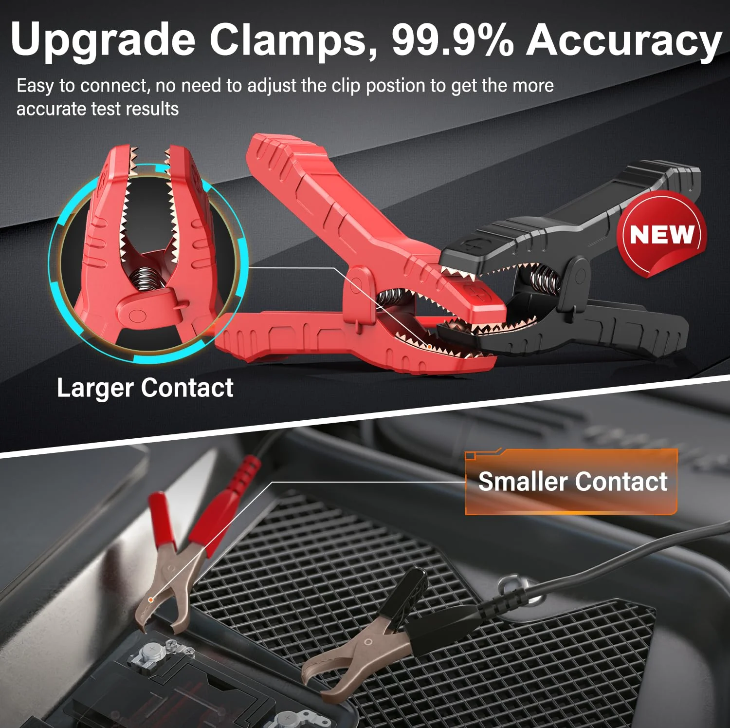 • Ensure Battery Status - Don't get stranded with a dead battery! Our car battery tester uses advanced conductance testing tech & upgraded copper clamp for stable communication & precise readings. Great for 12V & 24V vehicles like SUVs. ATVs. electric mower. tractors. boats. motorcycles. agricultural machinery. construction machinery. bus. heavy duty truck trailer. and more.