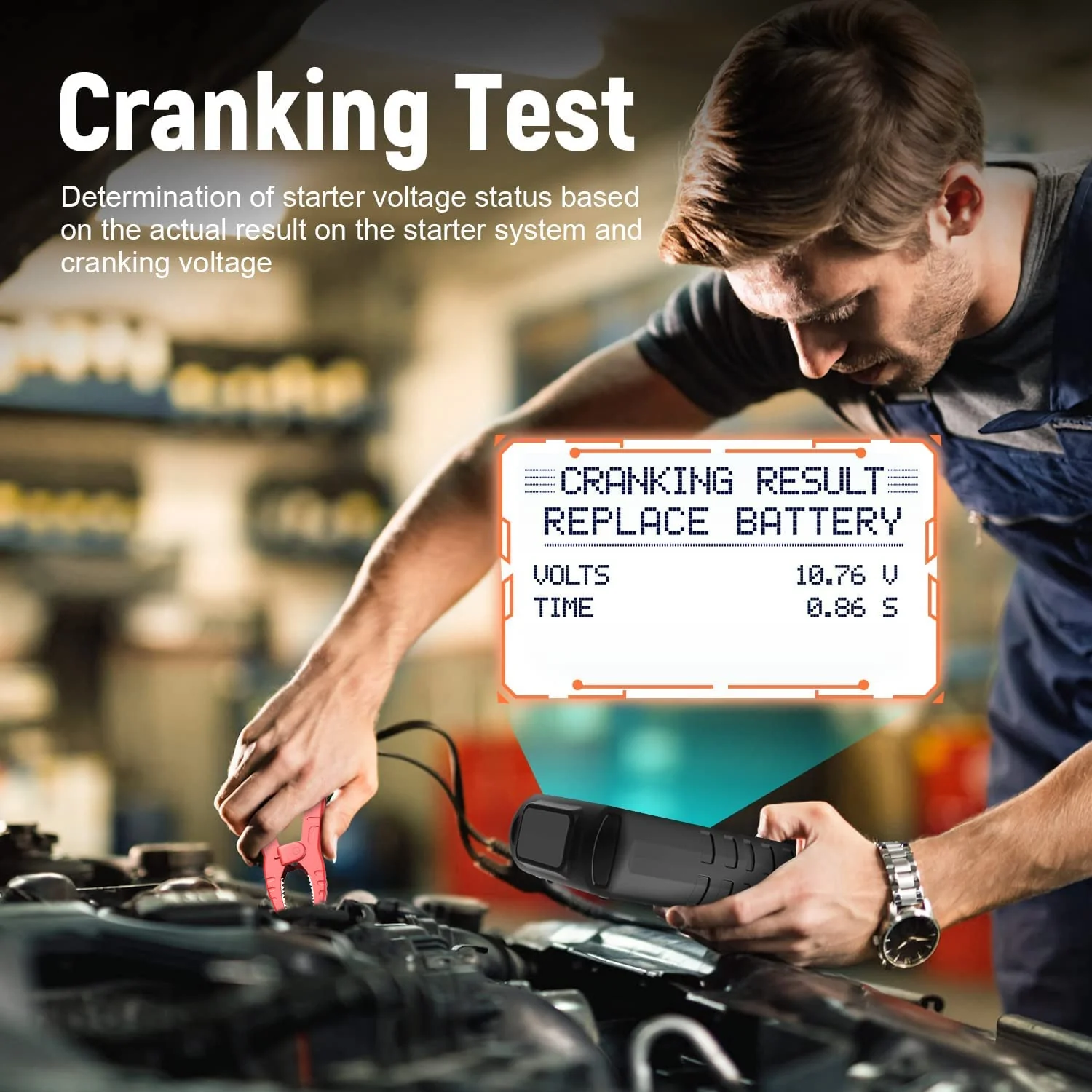 • Avoid Getting Stuck on the Garage - Turning on the engine to quickly and accurately test your vehicle's battery cranking and starter system with this easy-to-use CAR STARTER TESTER. With clip-on leads. you'll get precise readings for cranking voltage and time. allowing you to identify potential issues and take action before you're stranded on the road. No more guessing - know exactly when to charge or replace your battery for optimal performance.